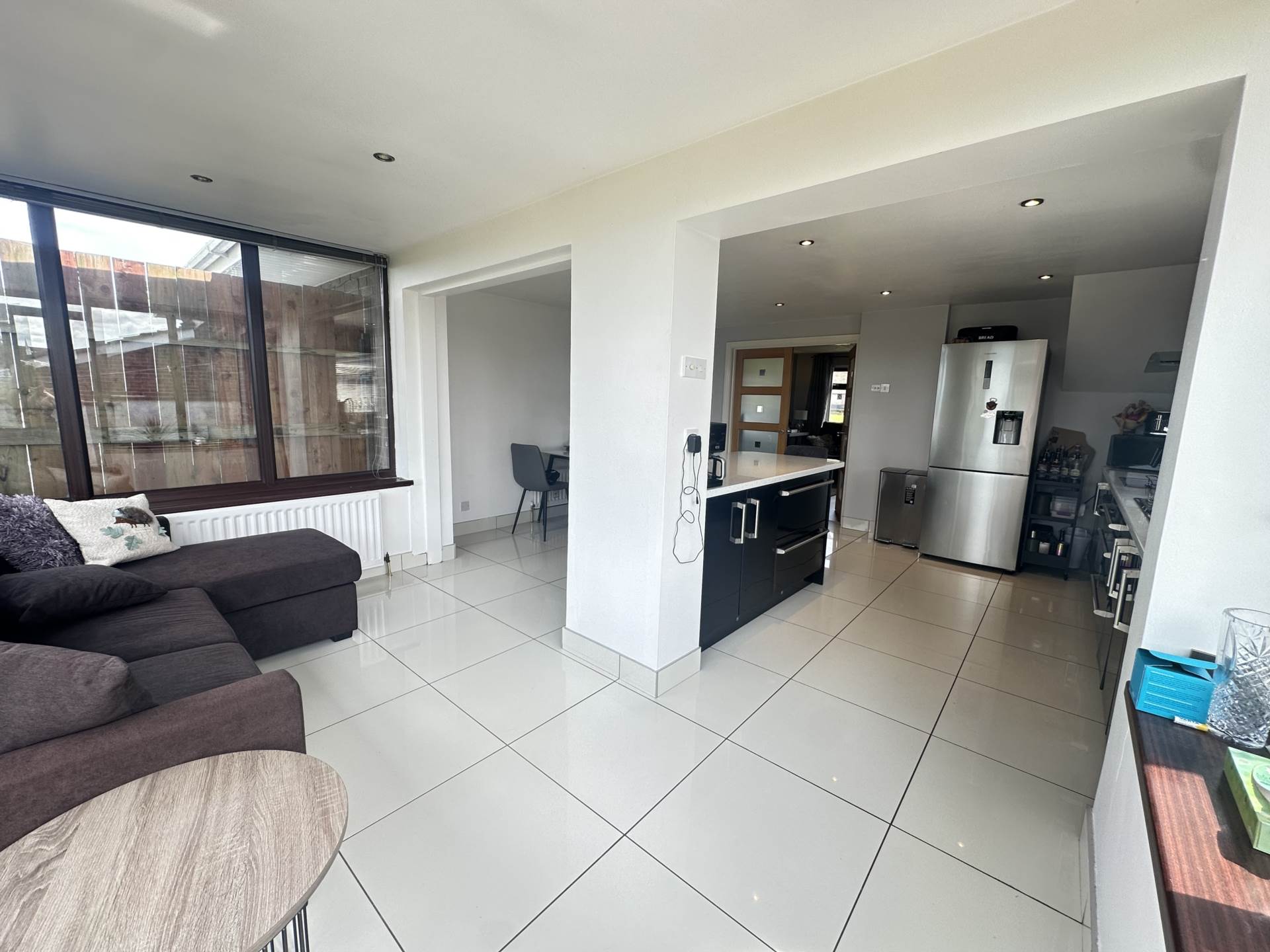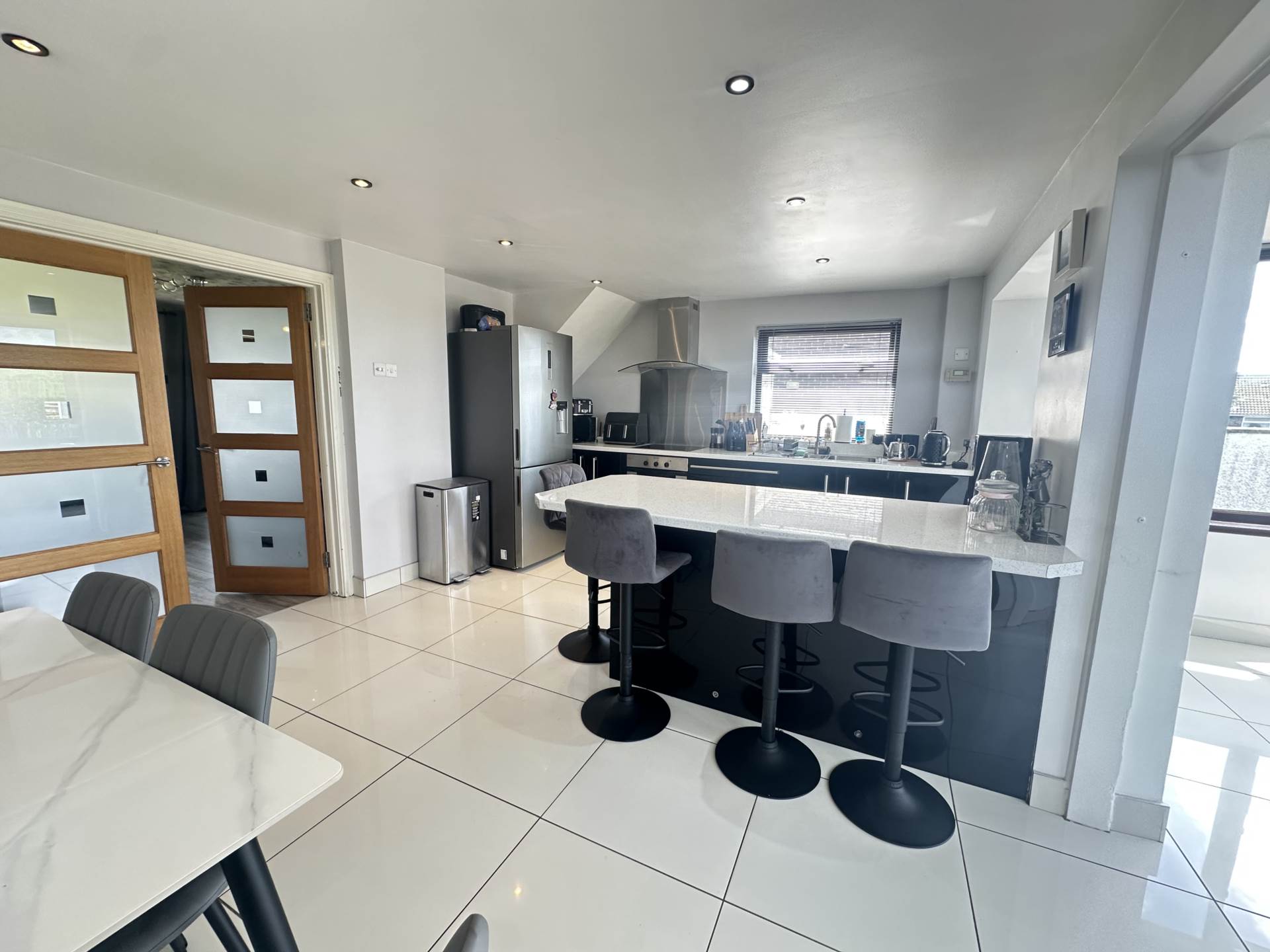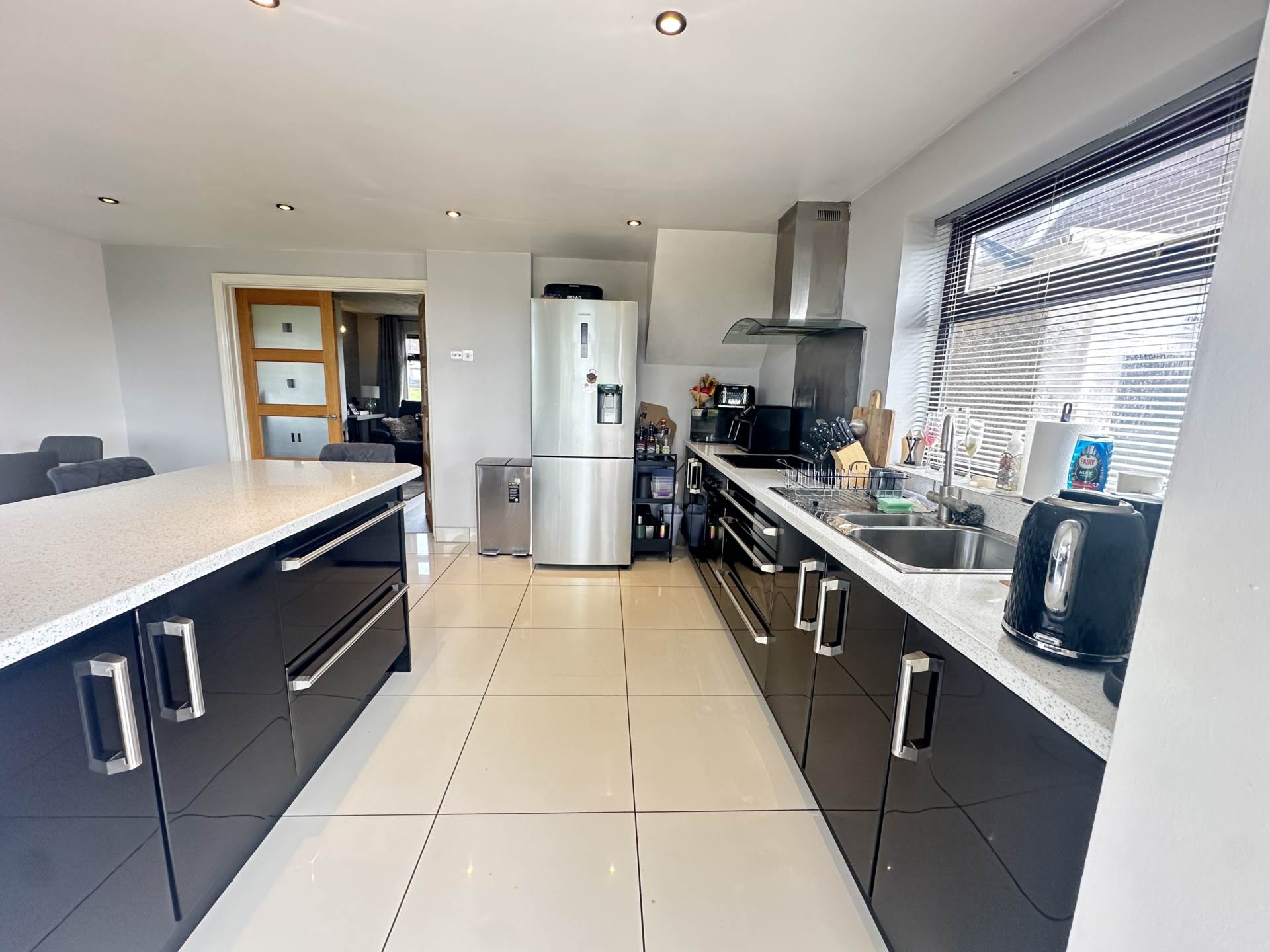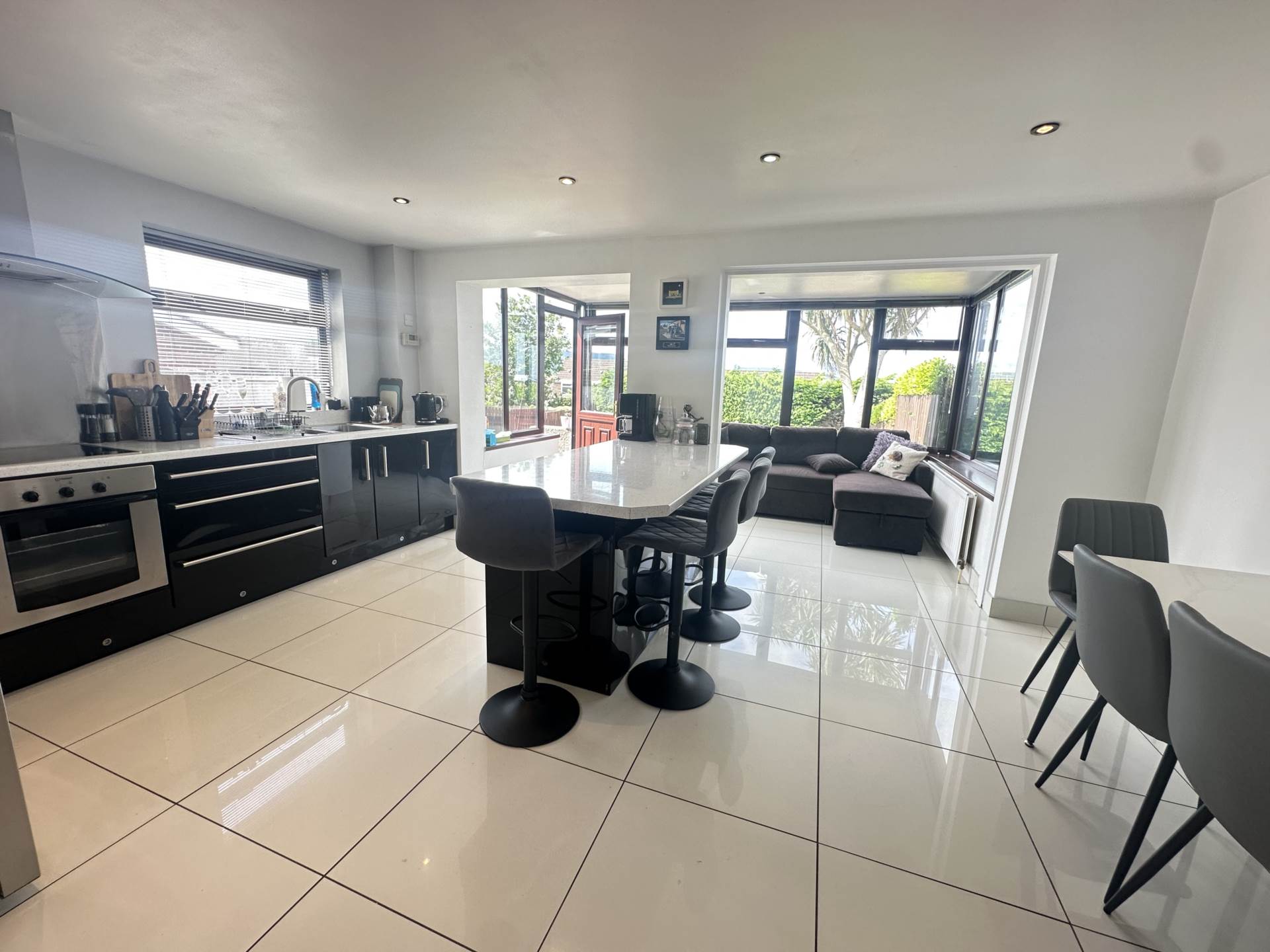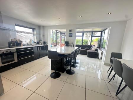 - Extended kitchen/dining room with gloss units including spacious island