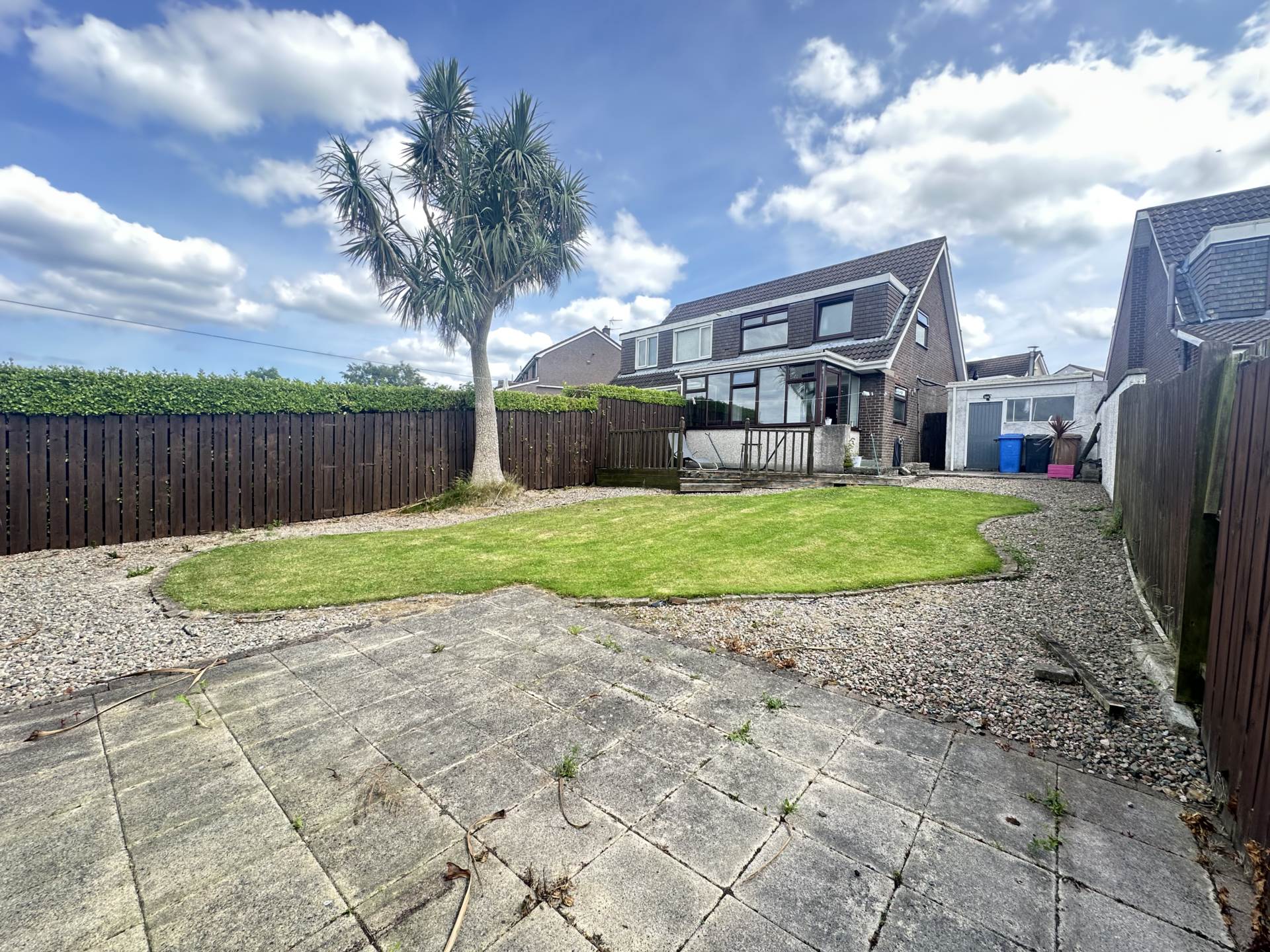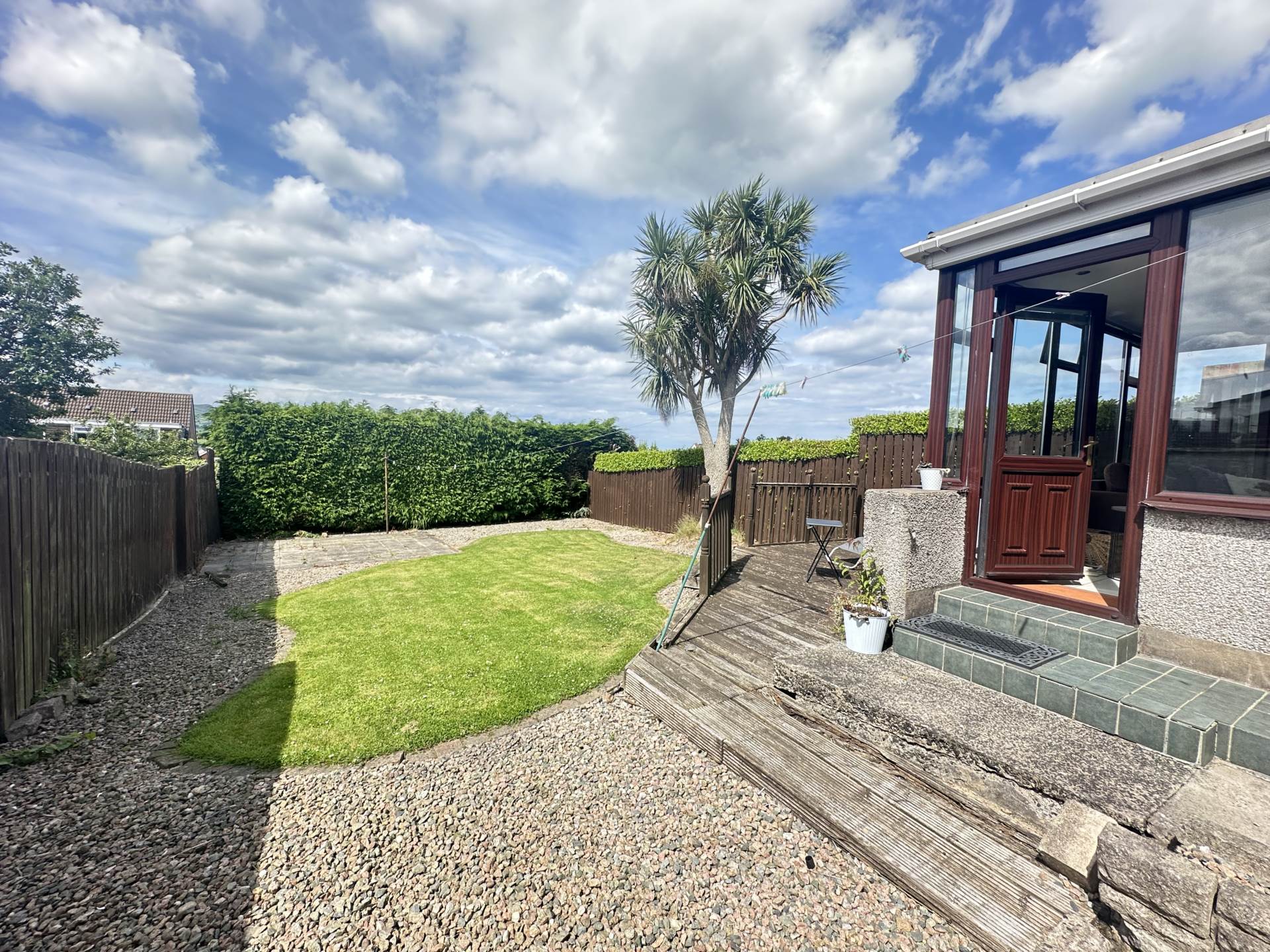 - Front garden in lawn with driveway and safely enclosed rear garden