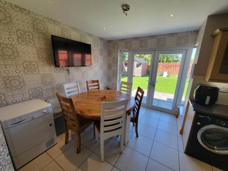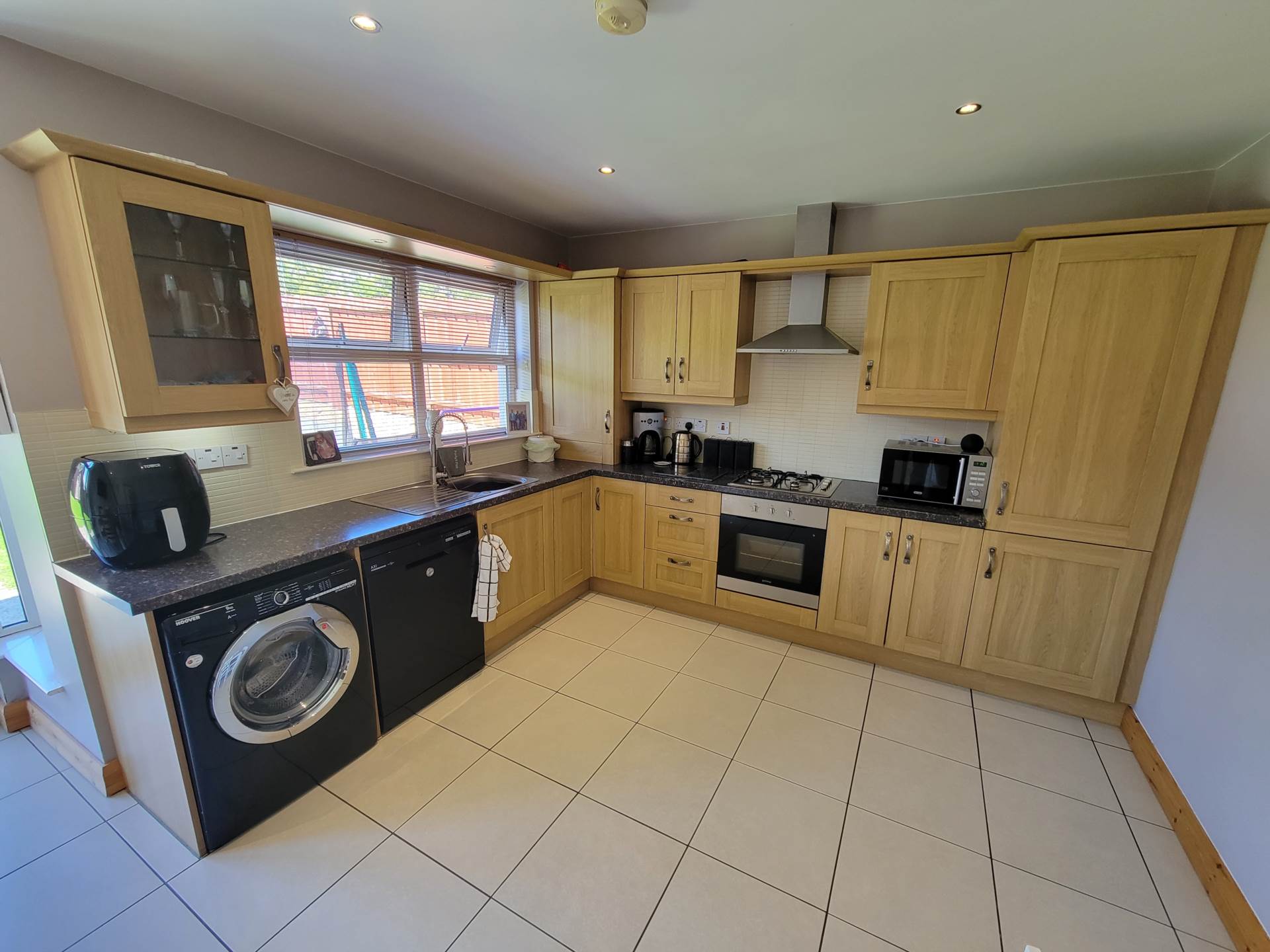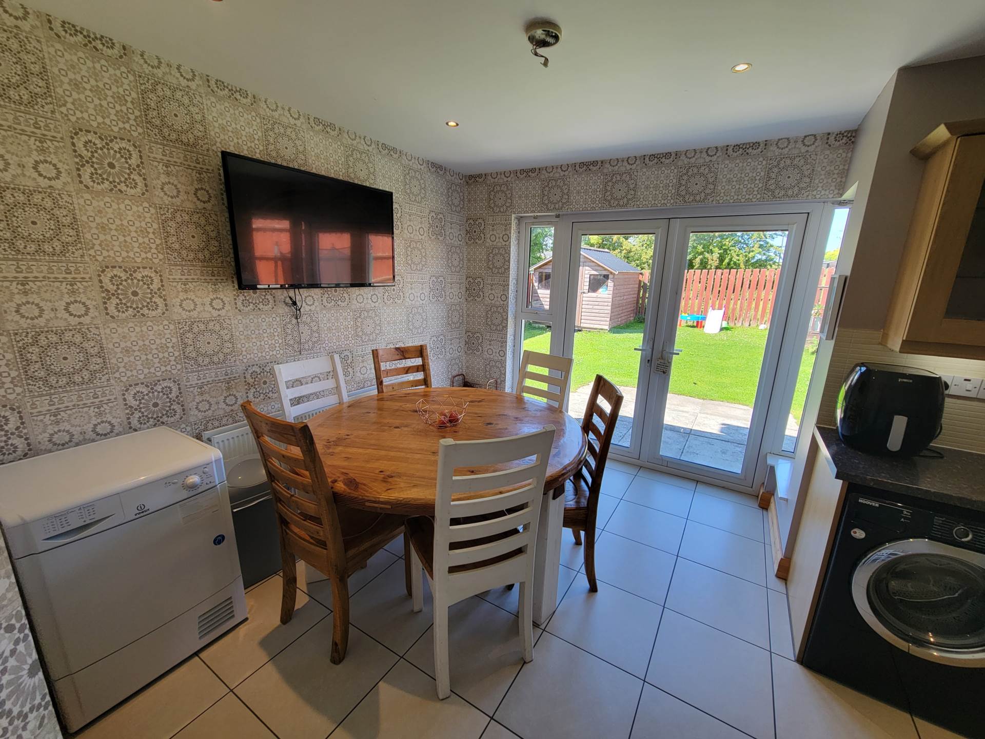 - Modern kitchen/dining area with high & low level units, integrated appliances and patio doors