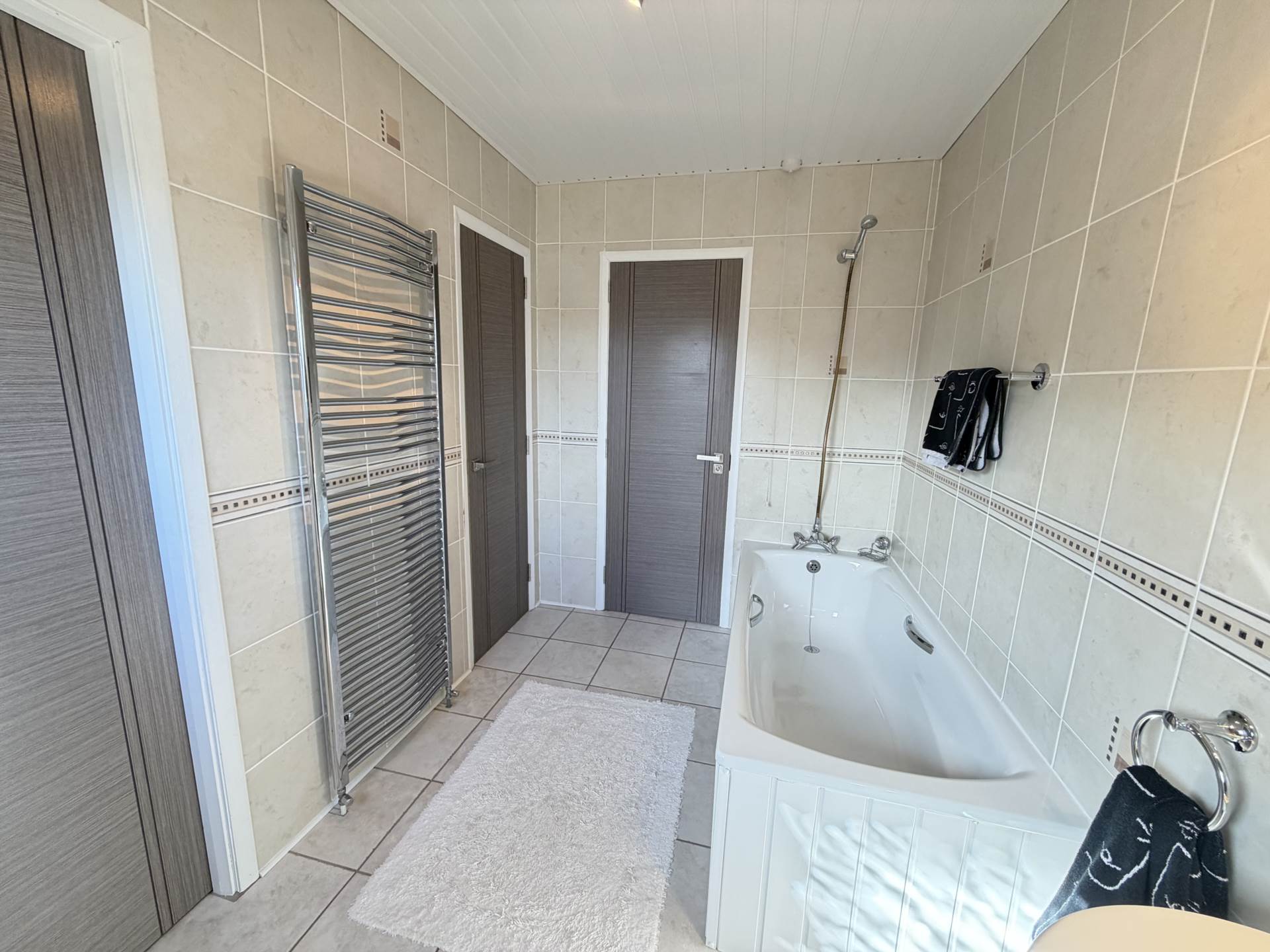 - Fully tiled family bathroom