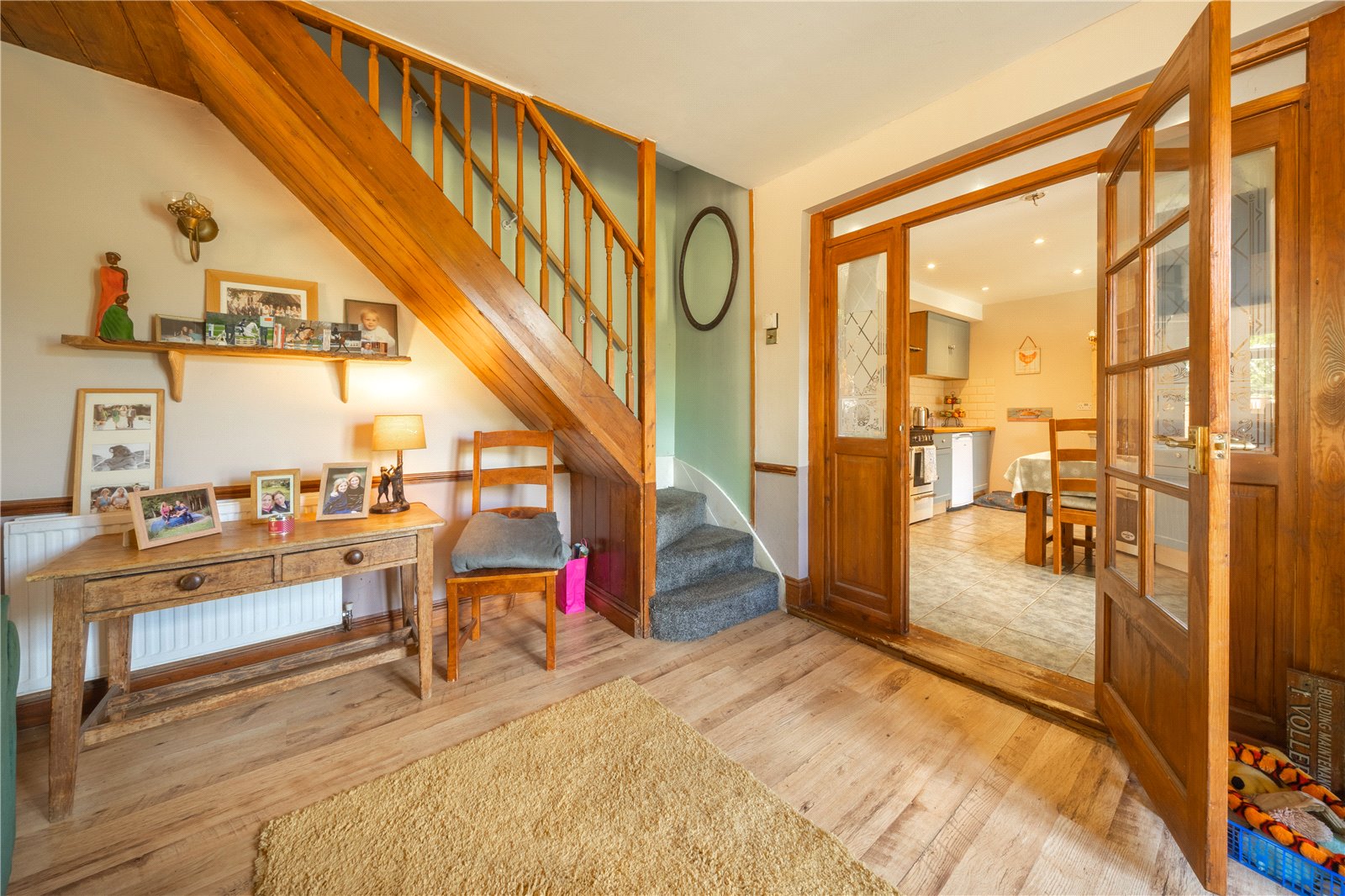 ENTRANCE VESTIBULE: With coat storage area to side, tiled floor, further storage cupboard, decorative half height internal glazed side with aspect into the kitchen area, door with glazed upper section opening to the kitchen / breakfast room.