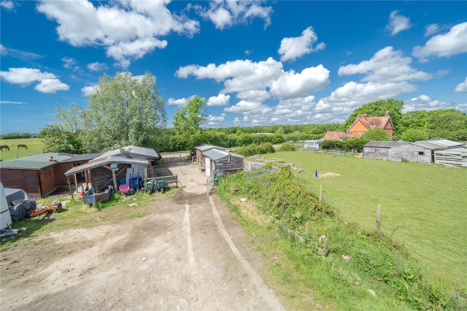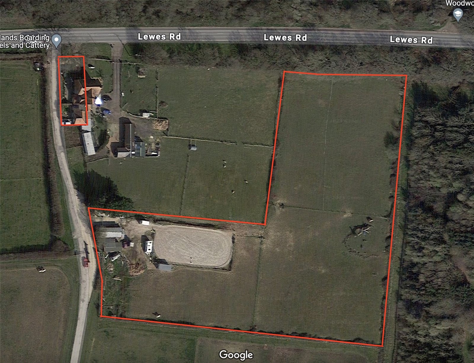 The property has views of the Downs and although it fronts onto the Laughton Lewes road, the equestrian part located a few meters down the private lane is away from everything.