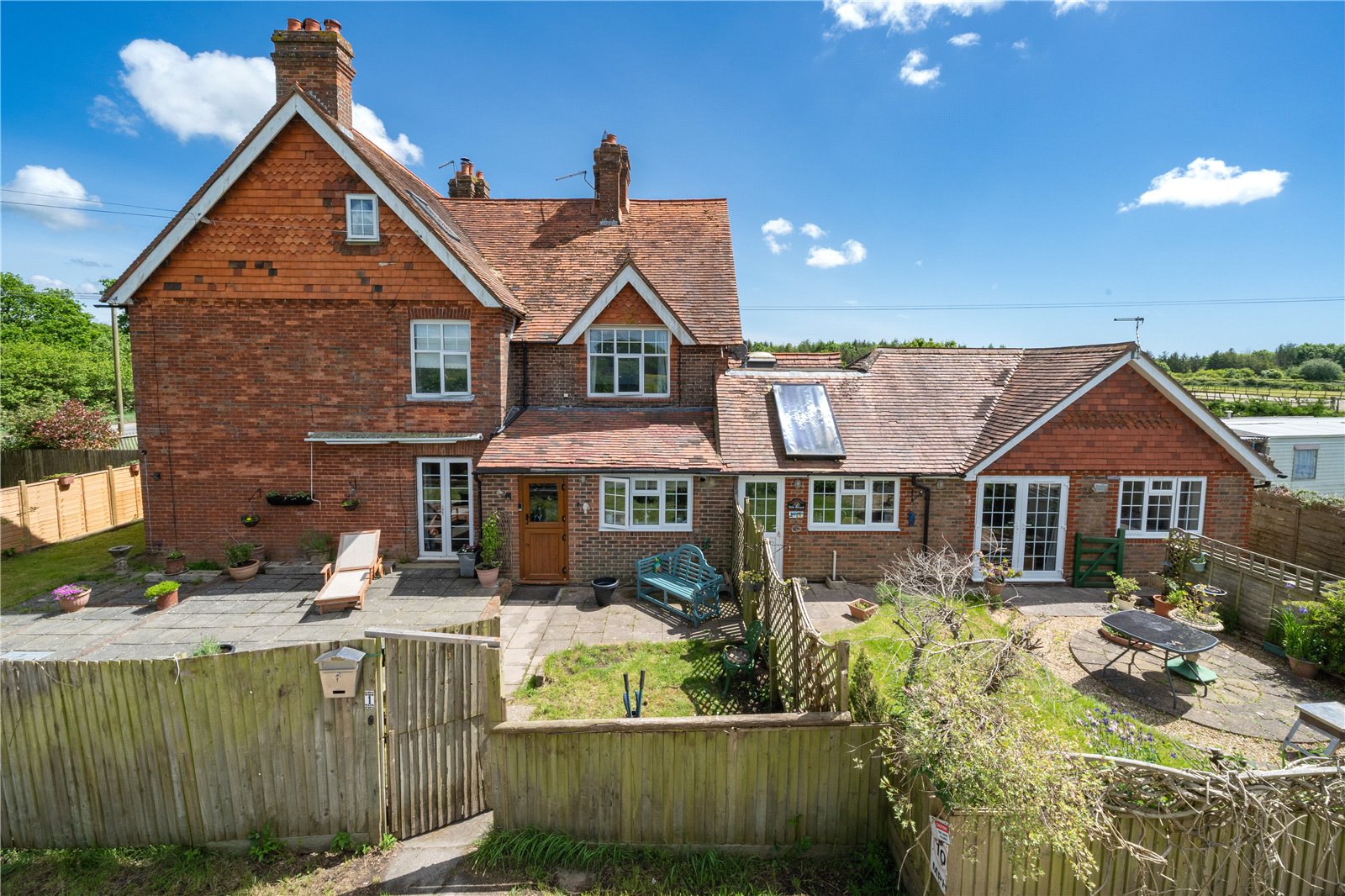 DESCRIPTION: A rare opportunity for an equestrian enthusiast to purchase a 3 to 4 bedroom cottage with potential to extend, or develop an end of terrace building plot, as well as benefiting from its own grazing paddocks of just under 3.5 acres, all weather menage and stable complex with a groom’s day room located only a few meters away from the main property off a private lane.
