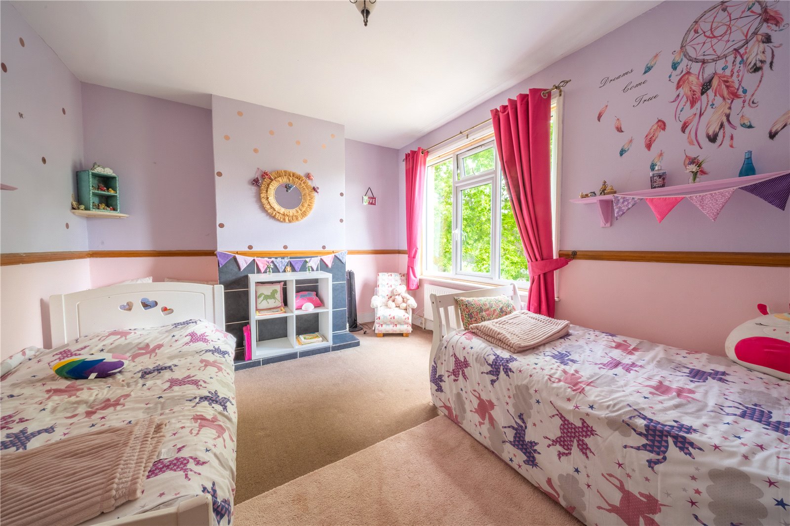 BEDROOM TWO: A double sized room with dado rails, radiator, double glazed windows with aspect to front gardens.
