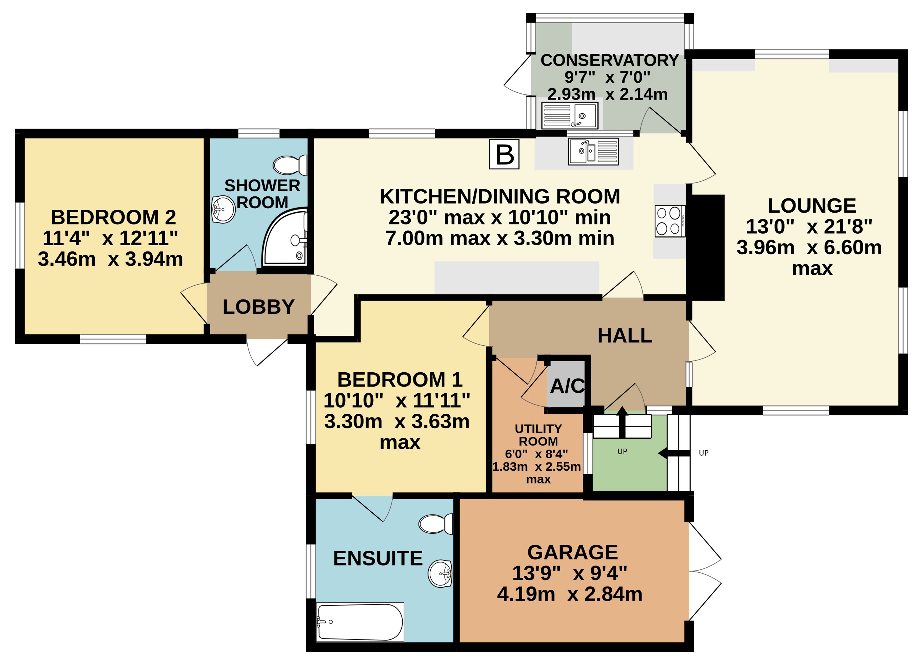 - Generous kitchen/dining room with access to a useful conservatory.