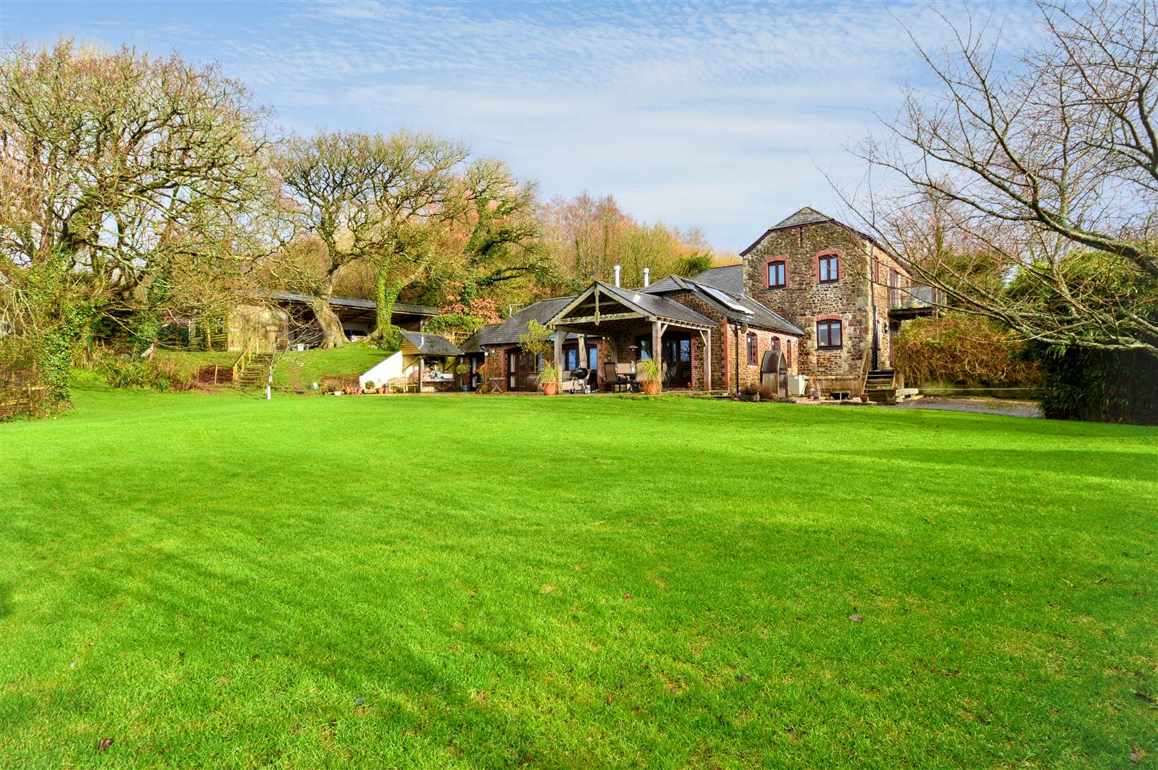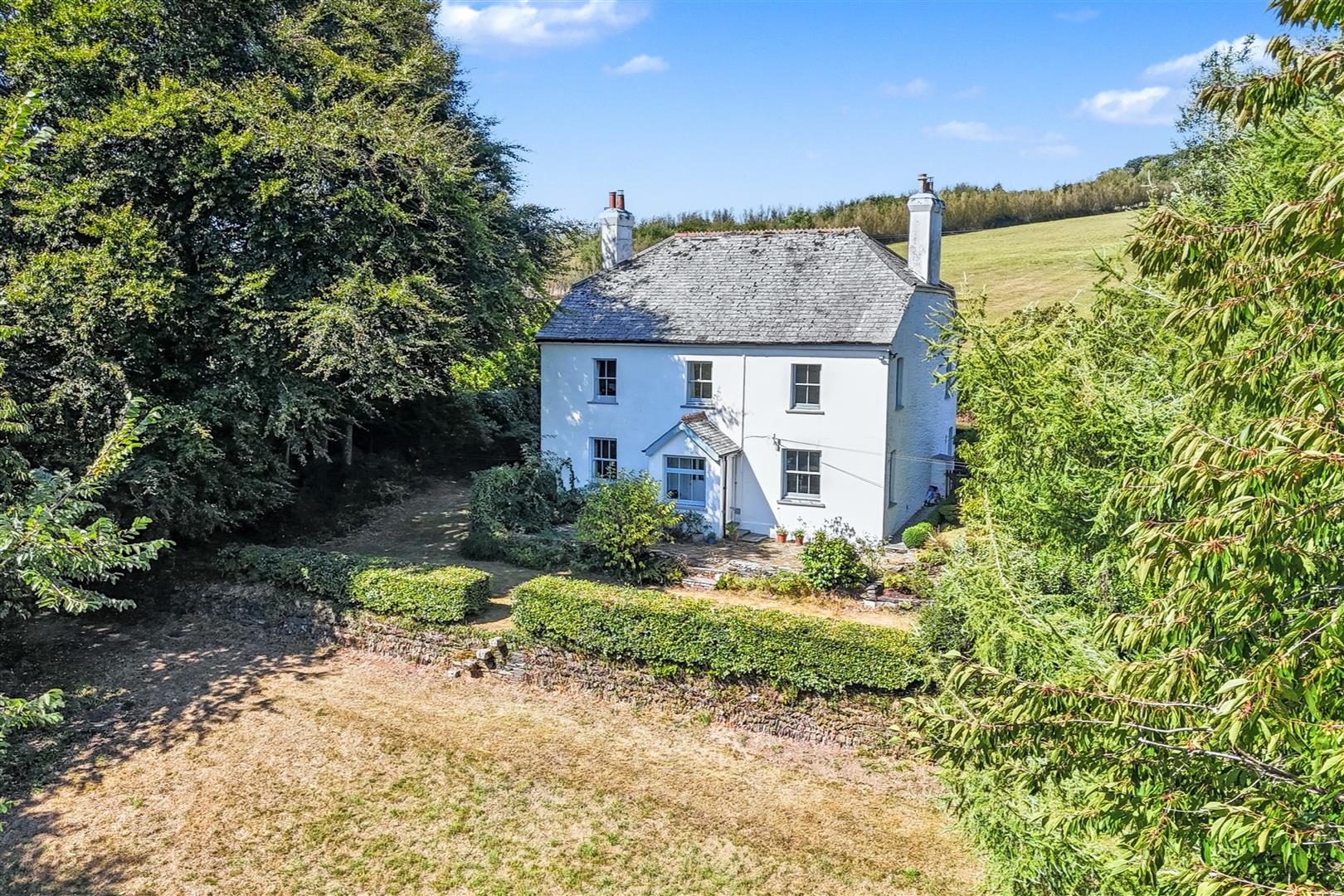 Outside - Burdown Farm is accessed from the road over a long drive which is flanked on either side by tree lined hedges and the pasture paddocks opening to a gravel parking area at the side of the house. Along the front, southerly aspect of the house is a stone paved patio which is ideal for alfresco dining and entertaining whilst enjoying the views over the surrounding countryside. At the side, is a lawned garden with low level box hedging and interspersed with a variety of evergreen and flowering shrubs leading to the middle lawned terrace with well established low level beech hedging. Granite steps descend to the lower lawn terrace which is bordered by mature deciduous and evergreen trees. At the rear is a gravel seating area bordered by well stocked flowerbed borders. From the rear courtyard a gate opens into the walled garden with ornamental flower and vegetable beds, fruit canes and bushes, an orchard with apple and plumb trees and two storage buildings to the rear of the house.