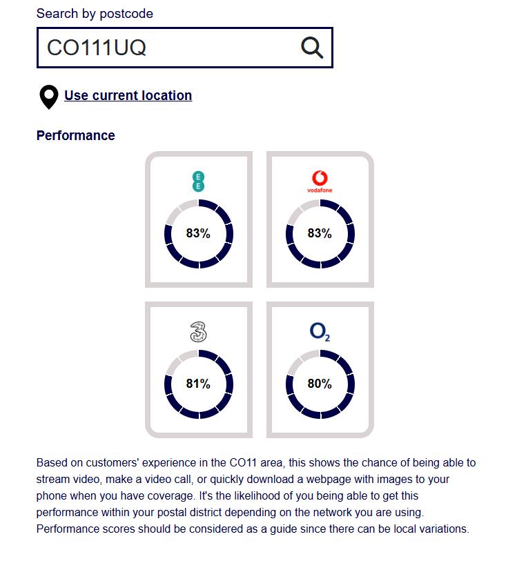 Mobile - EE & Vodaphone 83%, Three 81% & O2 80% (Source Ofcom)