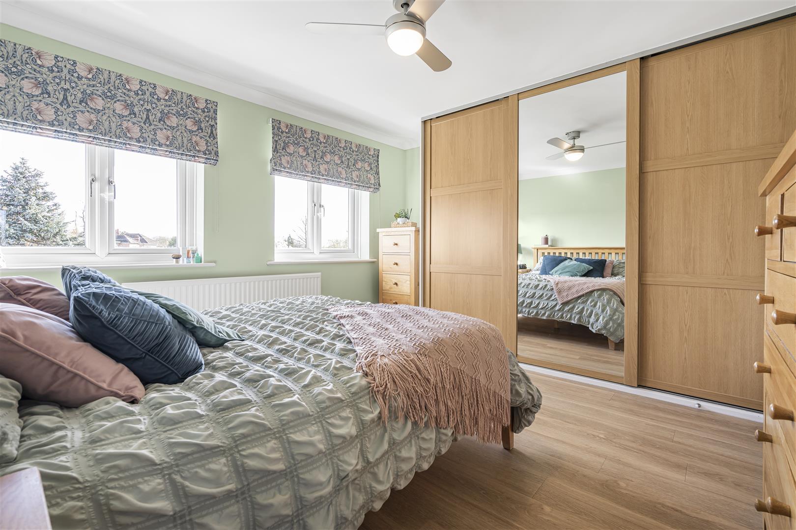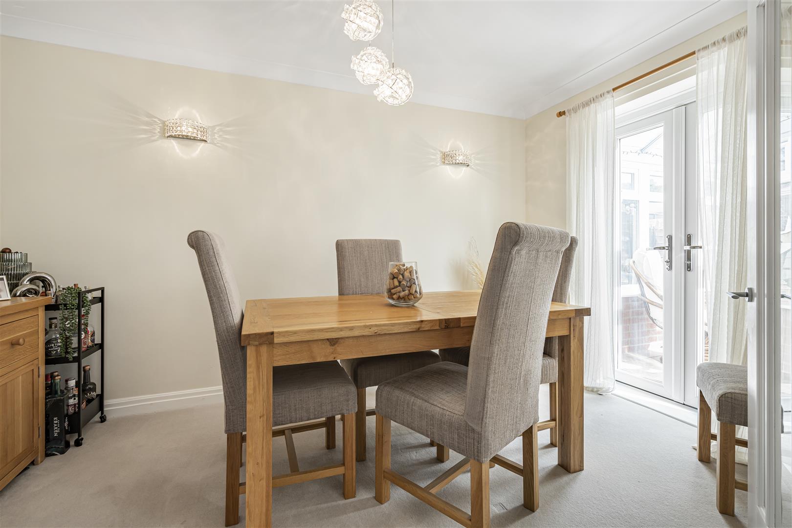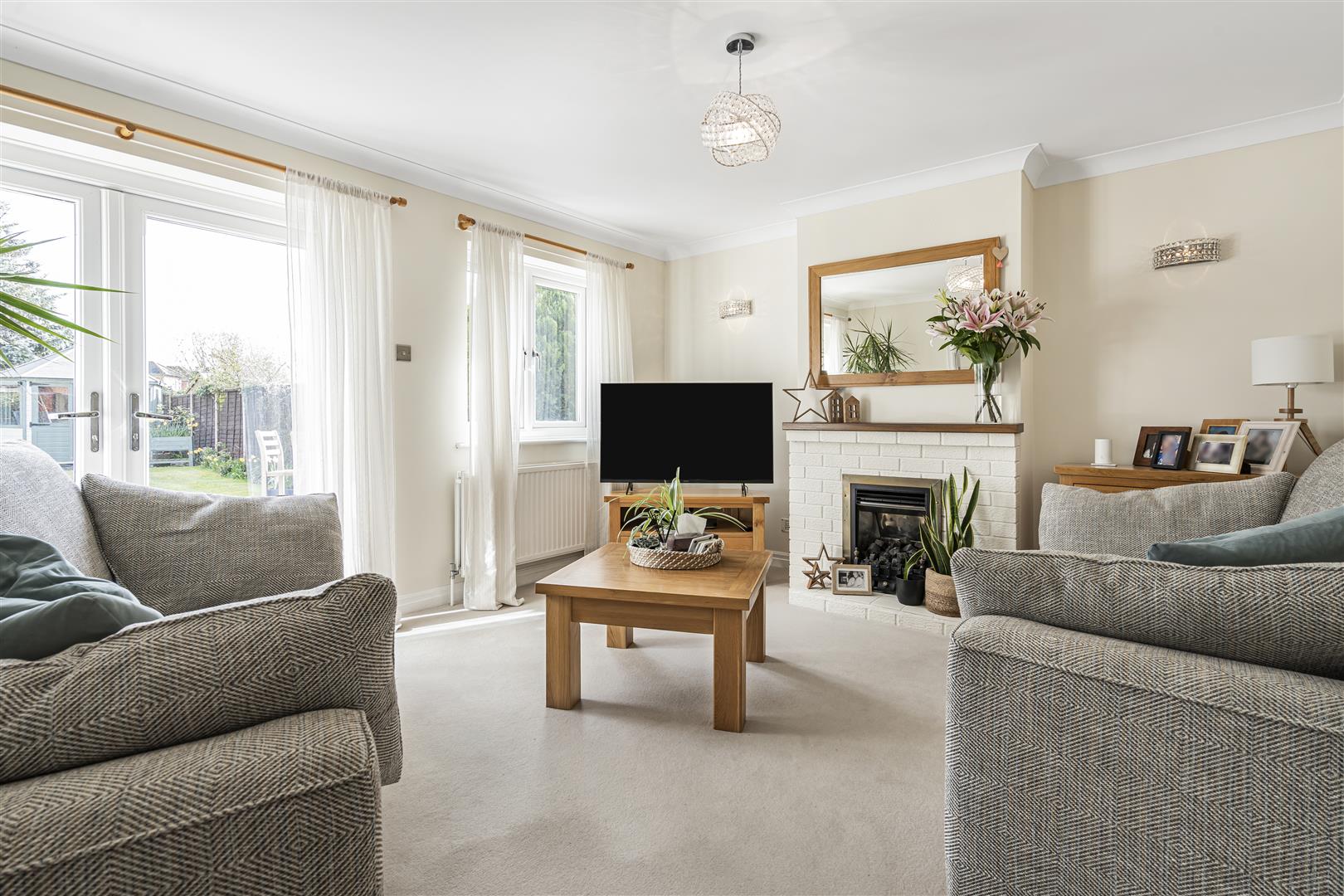 Upstairs, the main bedroom features an en-suite shower room and built-in wardrobes, while three further well-proportioned bedrooms share a modern family bathroom. Each room is bright and inviting, perfectly tailored for family life.