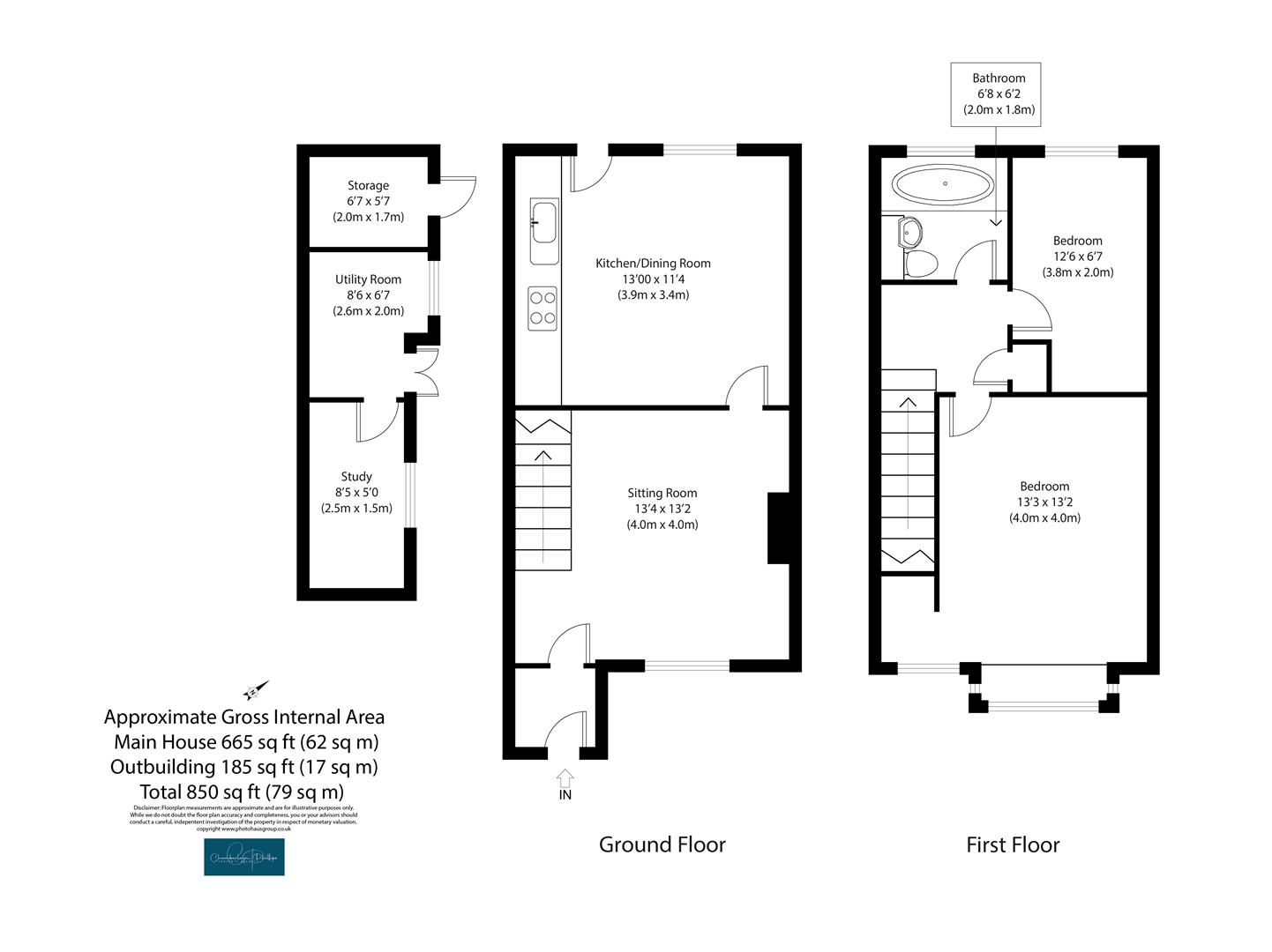 Upstairs, the principal bedroom provides a calm retreat, while the second bedroom offers great flexibility as a nursery, guest room, or home office. A modern bathroom, fitted with a shower over the bath, completes the upper floor.