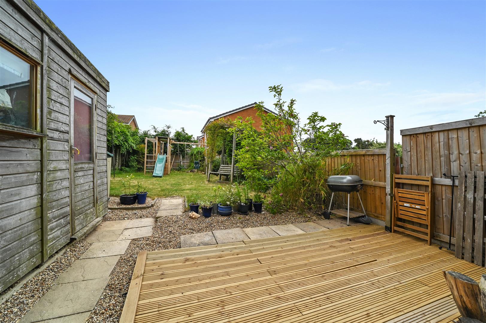Outside, the generous rear garden, unusually spacious for the area, is mostly laid to lawn and enhanced by mature shrubs, a patio seating area, and a charming pergola. Additional benefits include gas central heating and off-road parking for multiple vehicles.