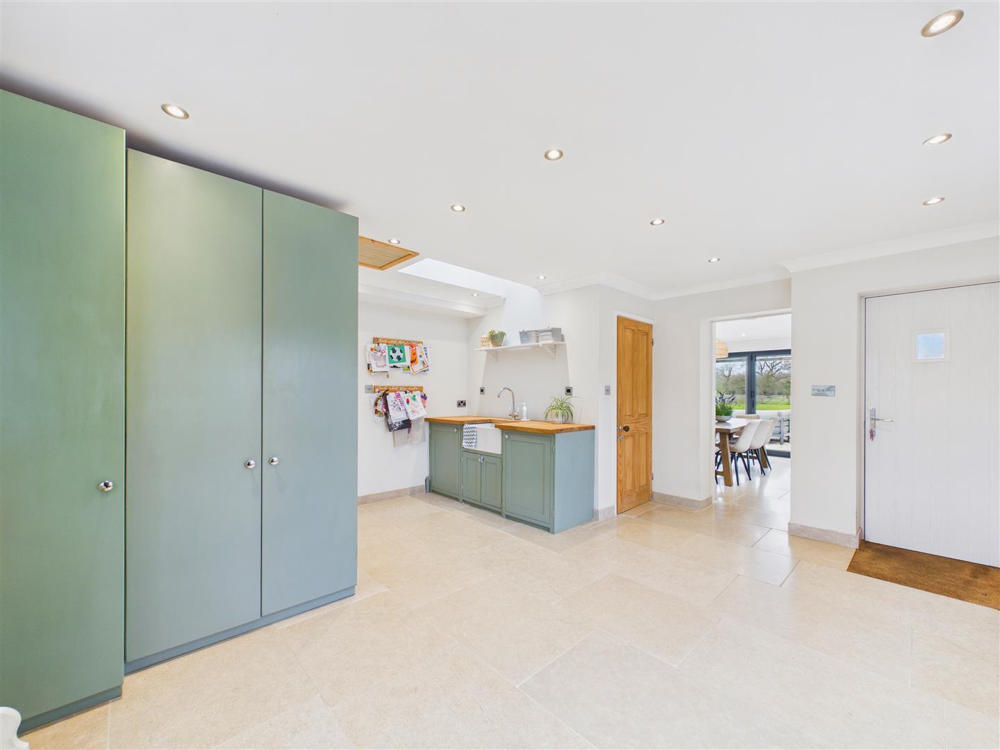 Utility/Boot Room - Of generous proportions with fitted units and solid oak worktops, belfast sink, plumbing for a washing machine and space for dryer. Windows to front and side elevations and external access door to side.