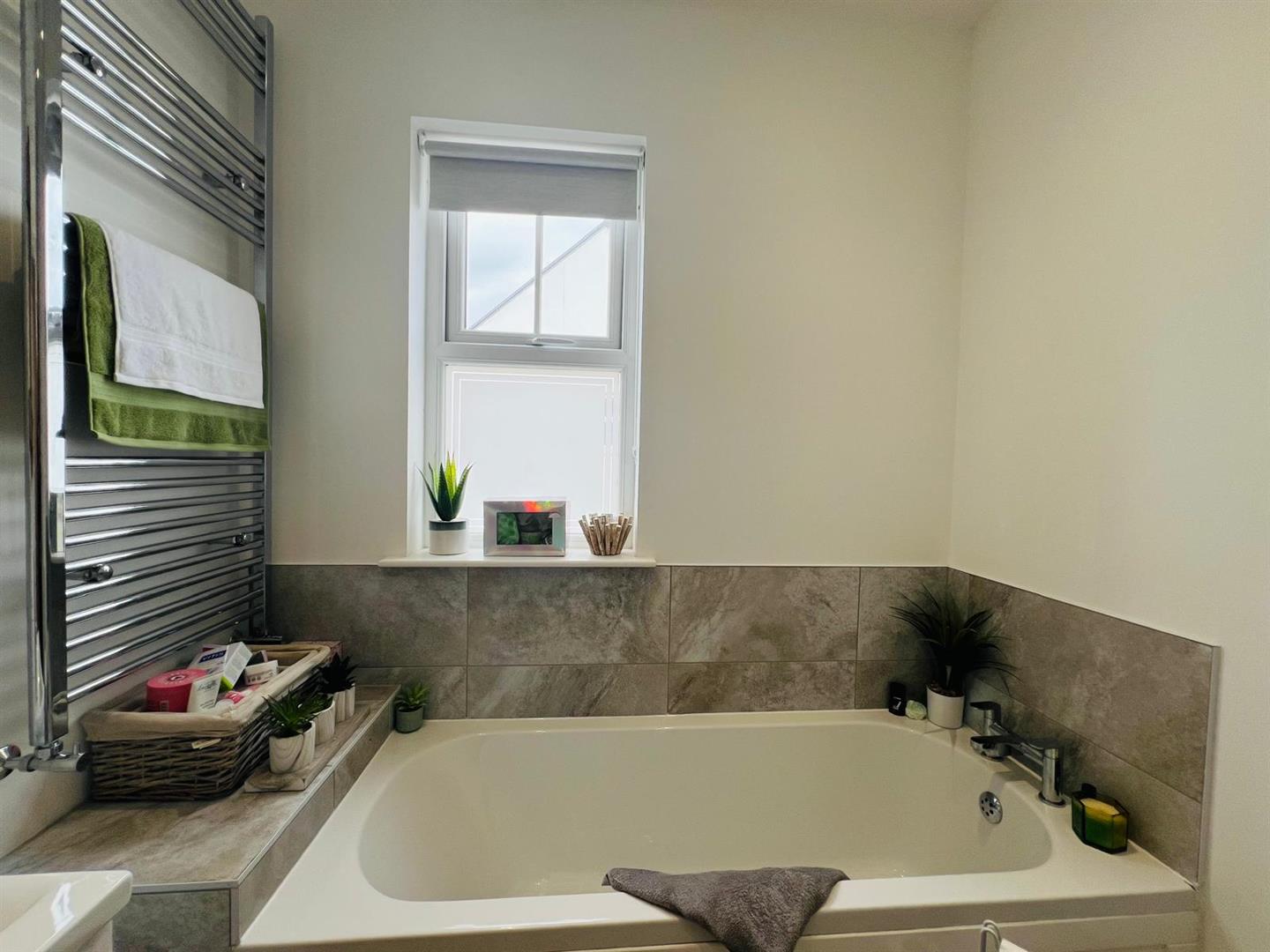 A splendid semi-detached property set in this highly sought after development of energy efficient homes. It offers good family accommodation and also neat lawn to front and excellent outdoor space to the rear. the kitchen and bathrooms are finished to a high specification and also has internal oak doors. There is space for a garage at the end of the driveway.