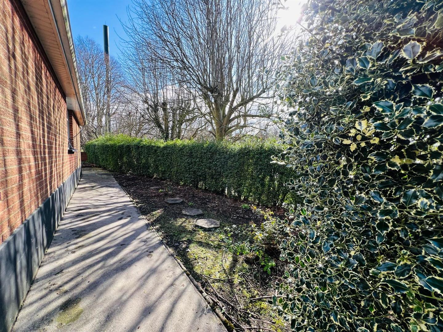 Hedge to side.