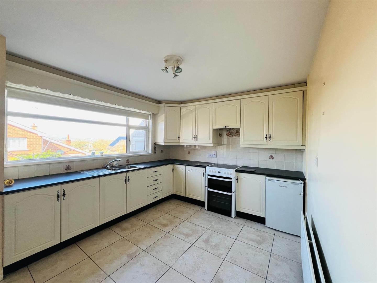 3.84m x 3.15m (12'7" x 10'4") - Having eye and low level units, tiling between units, 1 1/2 bowl stainless steel sink unit with mixer taps, space for fridge, dining space, tiled floor.
