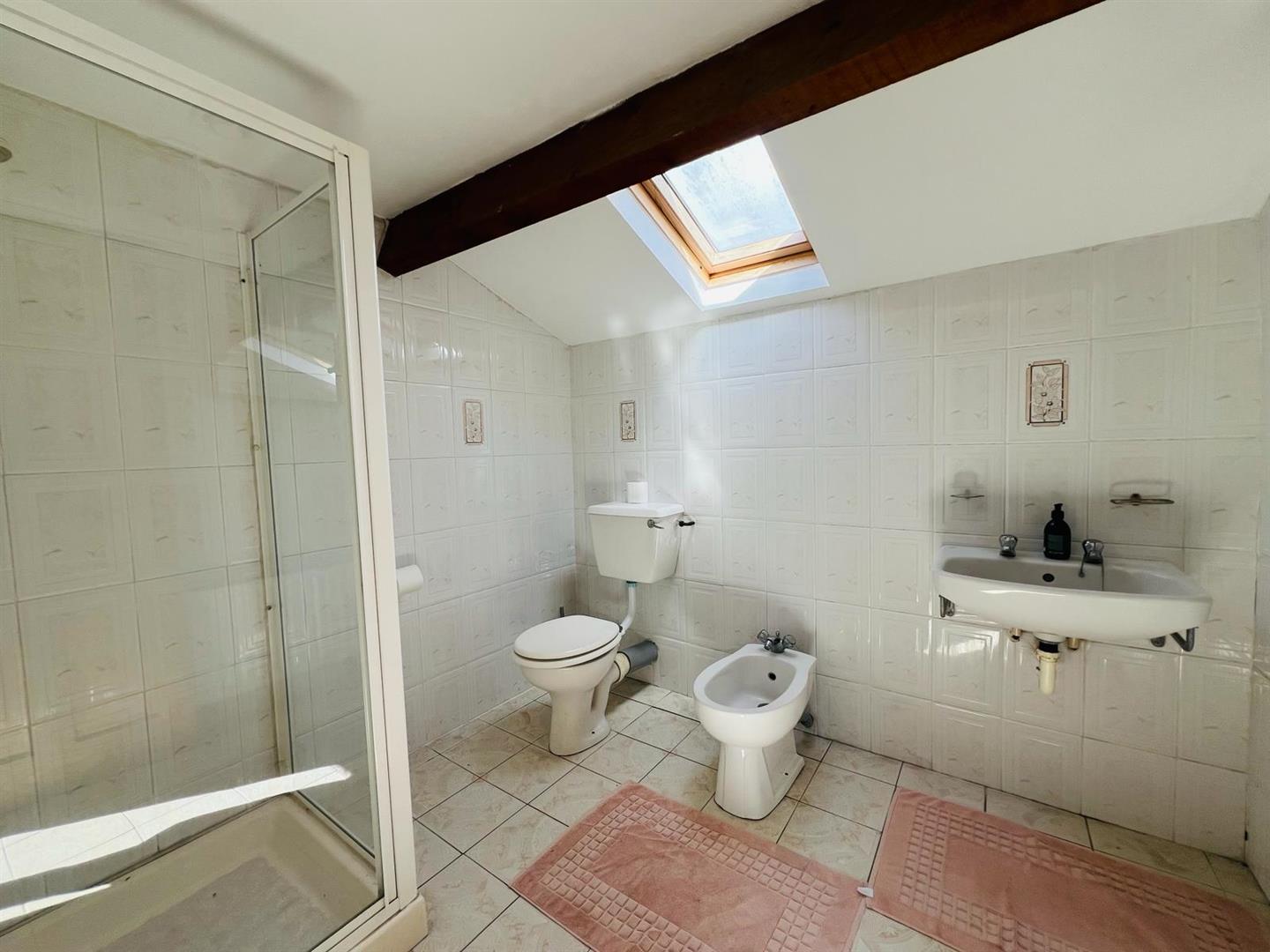 Comprising walk in electric shower, whb and wc, bidet, tiled walls and floor.