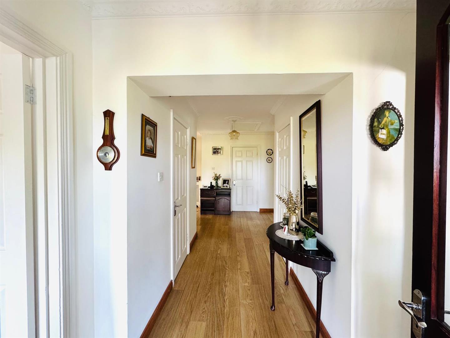 Having cloaks cupboard, hotpress, store, ceiling cornicing and laminated wooden floor.