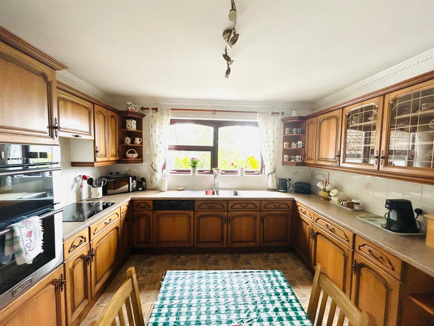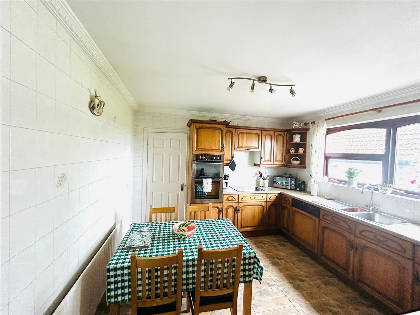 3.61m x 3.45m (11'10" x 11'4") - Having eye and low level units, glazed display cupboards, tiling between units, 1 1/2 bowl stainless steel sink unit with mixer taps, hob, double oven, extractor hood, integrated dishwasher, dining space, tiled walls and floor.