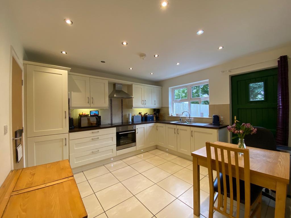 3.63m x 3.51m (11'11" x 11'6") - Having range of eye and low level units, hob, underoven, stainless steel extractor hood, 1 1/2bowl stainless steel sink unit with mixer taps, integrated fridge/freezer and washing machine, feature skirting lighting, tiling between units, tiled floor. recessed ceiling lighting.