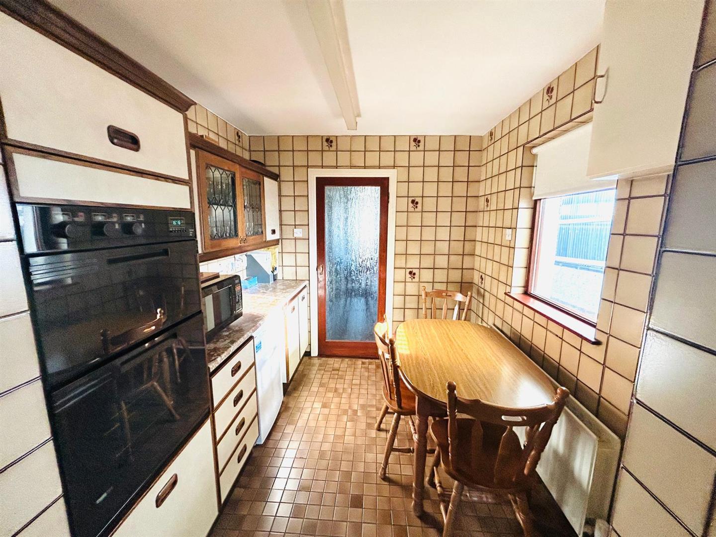 5.87m x 2.36m (19'3" x 7'9") - Having eye and low level units, tiling between units, 1 1/2 bowl single drainer stainless steel sink unit with mixer taps, space for fridge and freezer, plumbed for washing machine, double oven, hob, extractor fan, fully tiled walls and tiled floor.