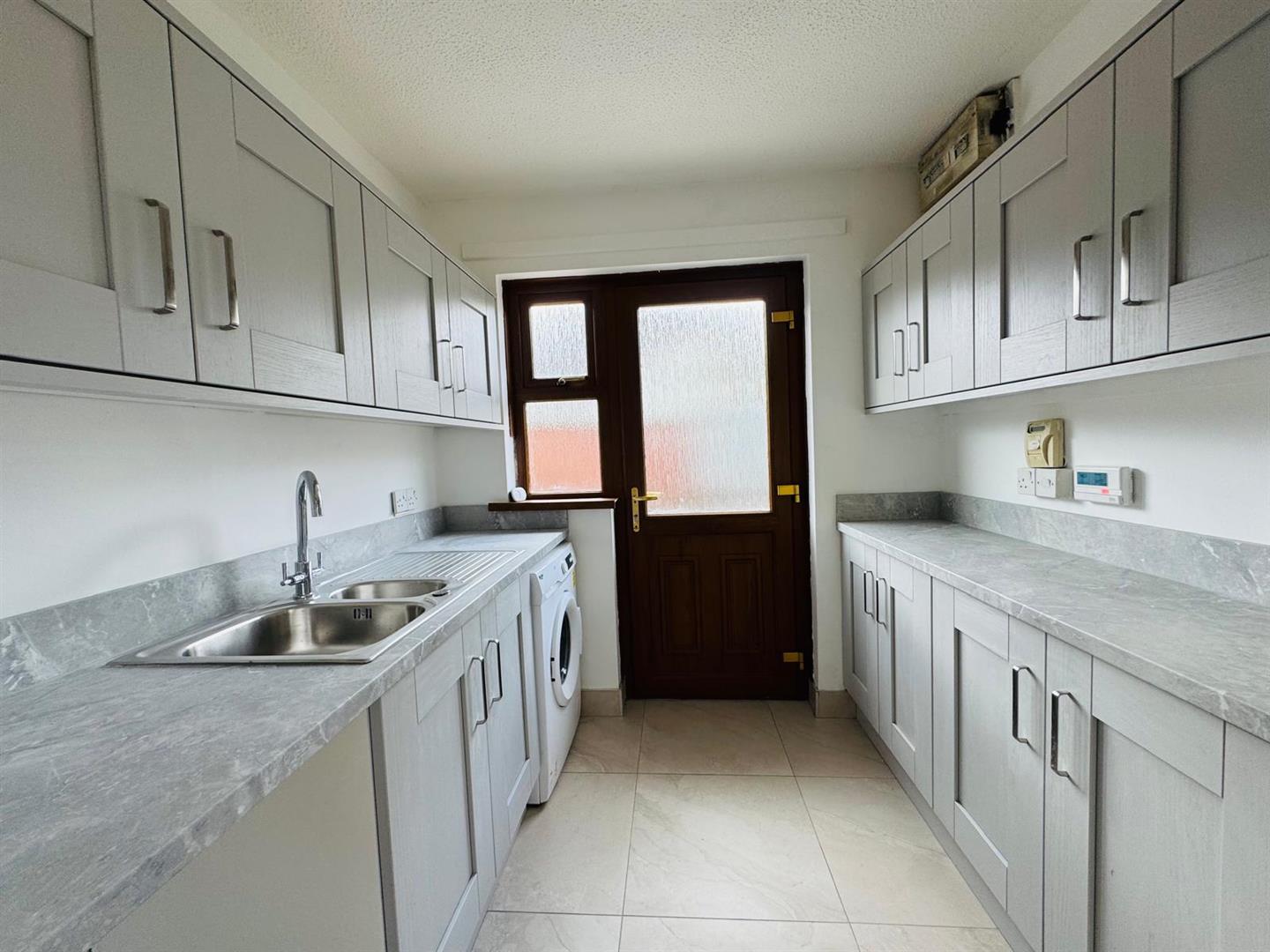 Having eye and low level units, 1 1/2 bowl stainless steel sink unit with mixer taps, plumbed for washing machine, space for tumble dryer, tiled floor.