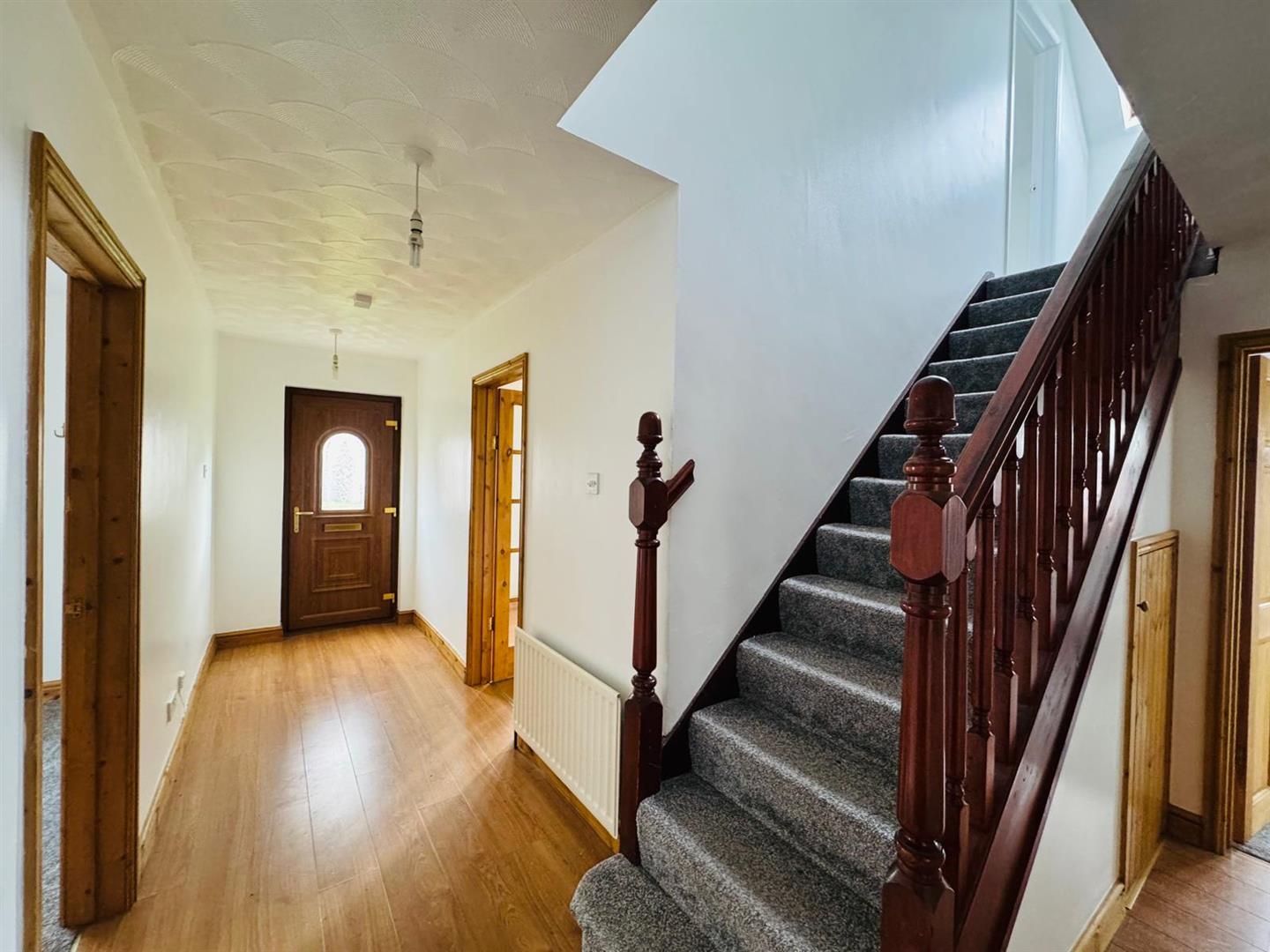 Having cloaks cupboard, understairs storage and laminated wooden floor.