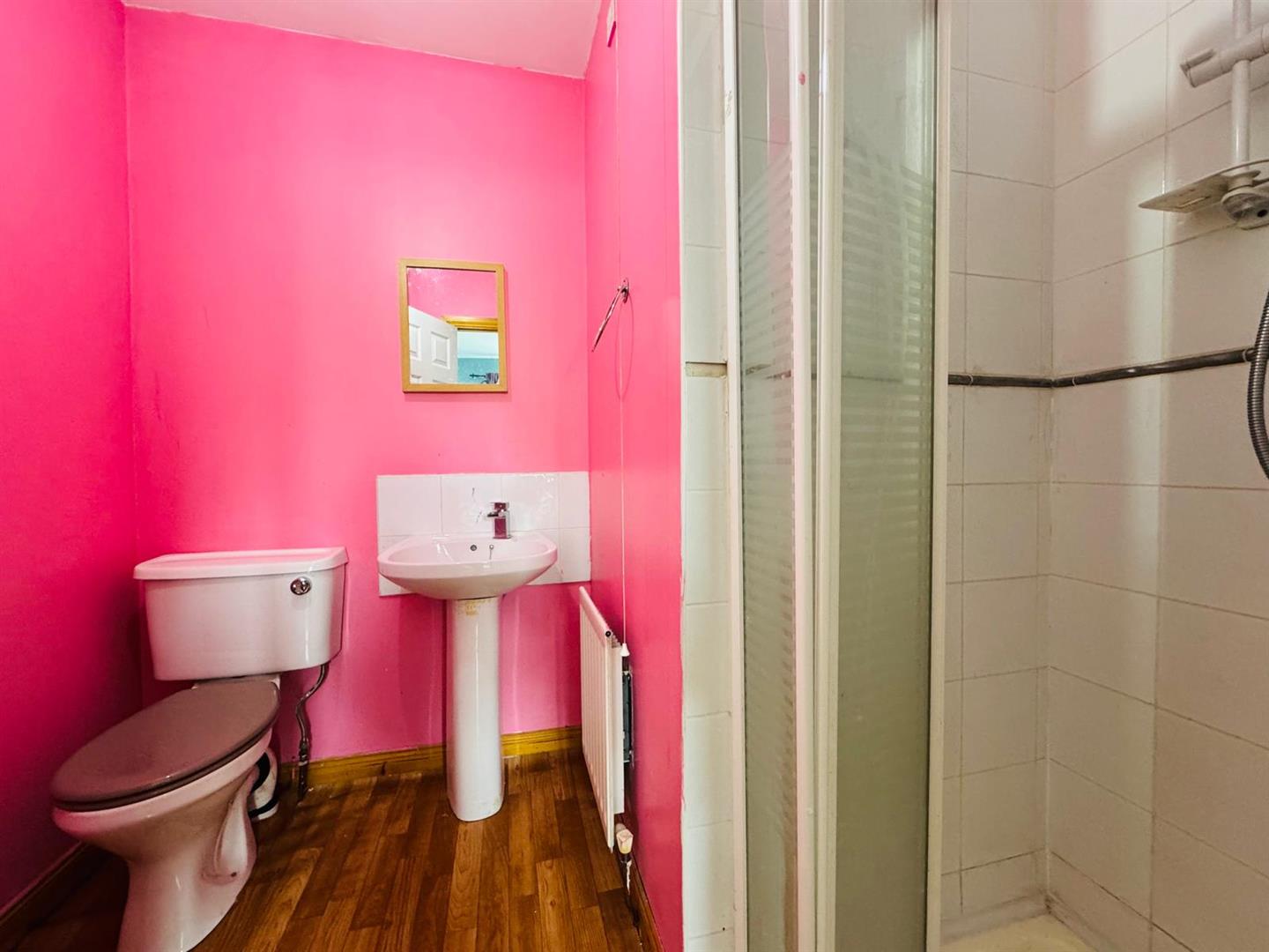 Comprising fully tiled walk in electric shower, whb and wc.