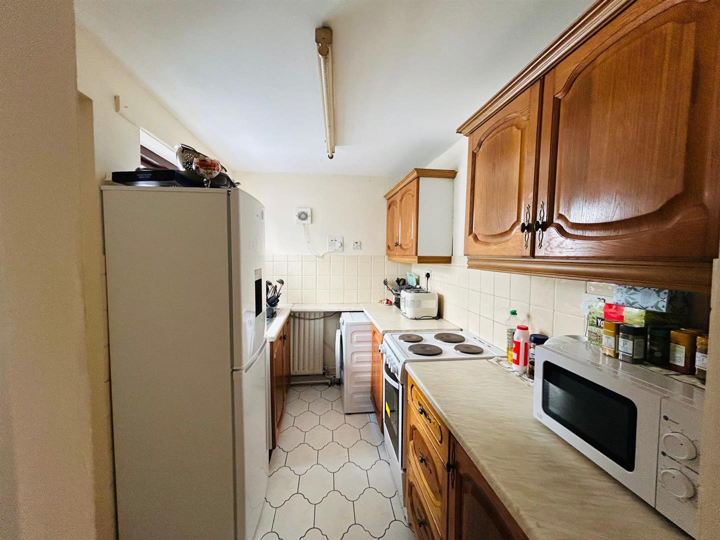 2.79m x 1.91m (9'2" x 6'3") - Having eye and low level units, tiling between units, 1 1/2 bowl stainless steel sink unit with mixer taps, wired for cooker, space for fridge/freezer, tiled floor.