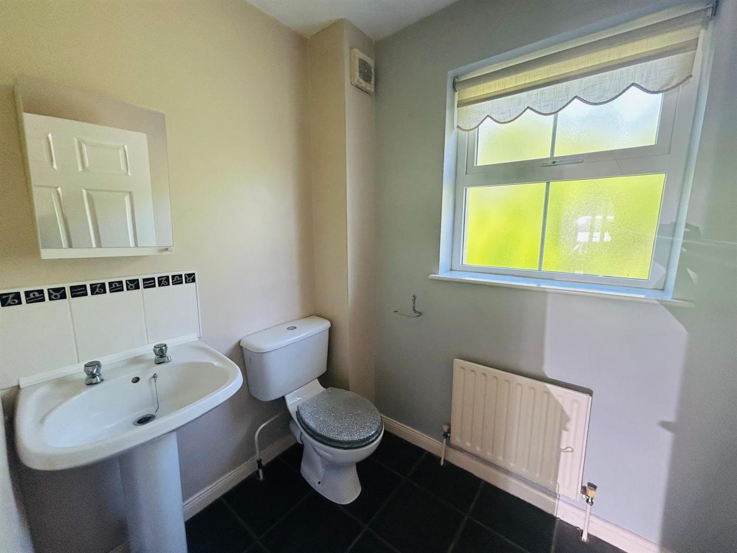 Comprising bath with tiling around, whb with tiling around, wc, extractor fan, tiled floor.