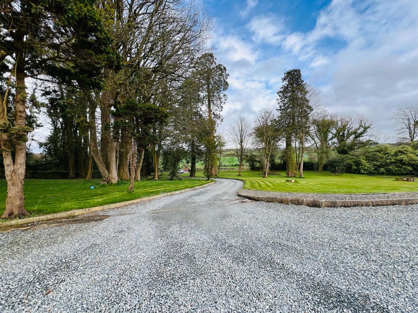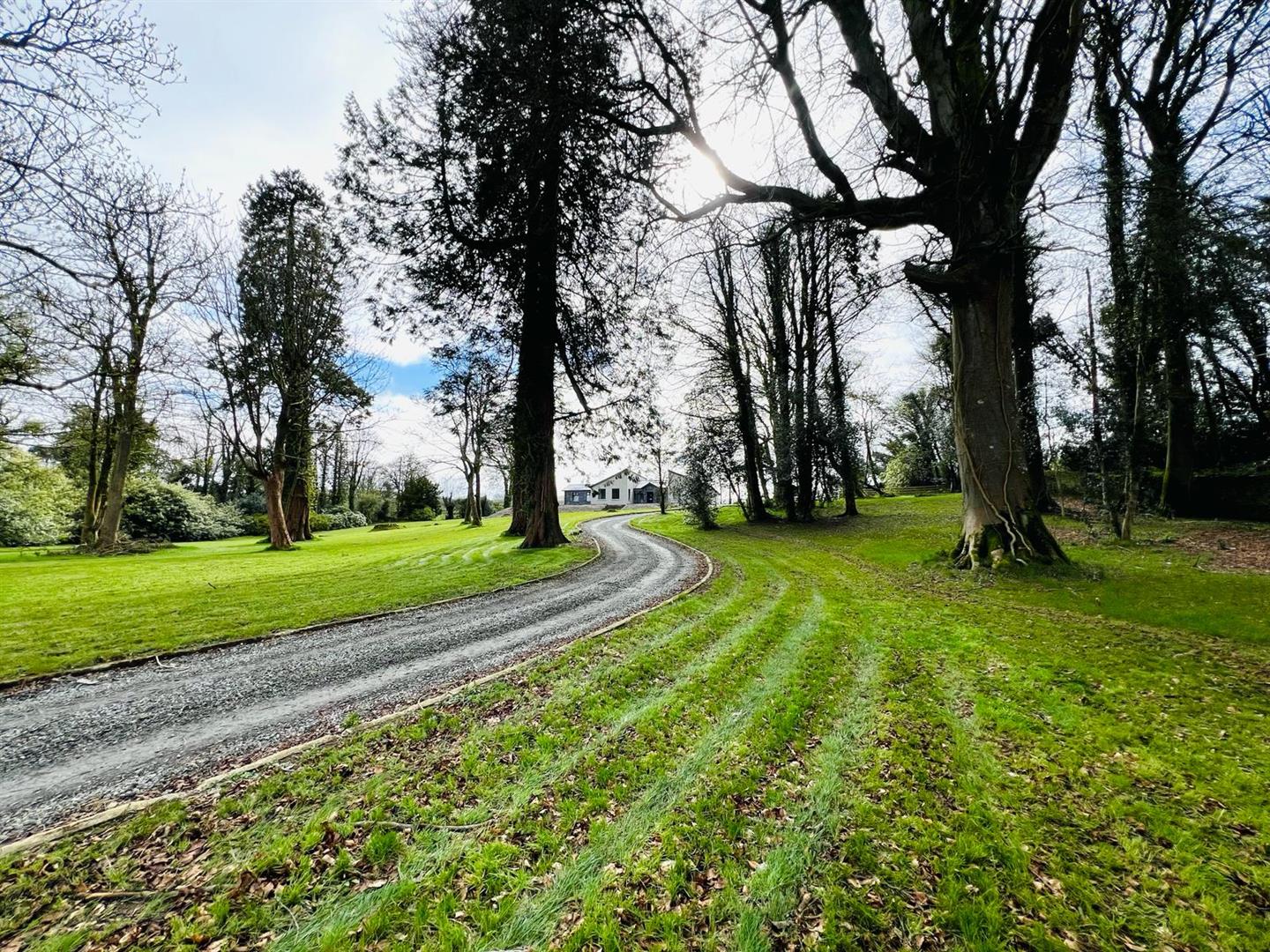 Sweeping tree lined driveway.