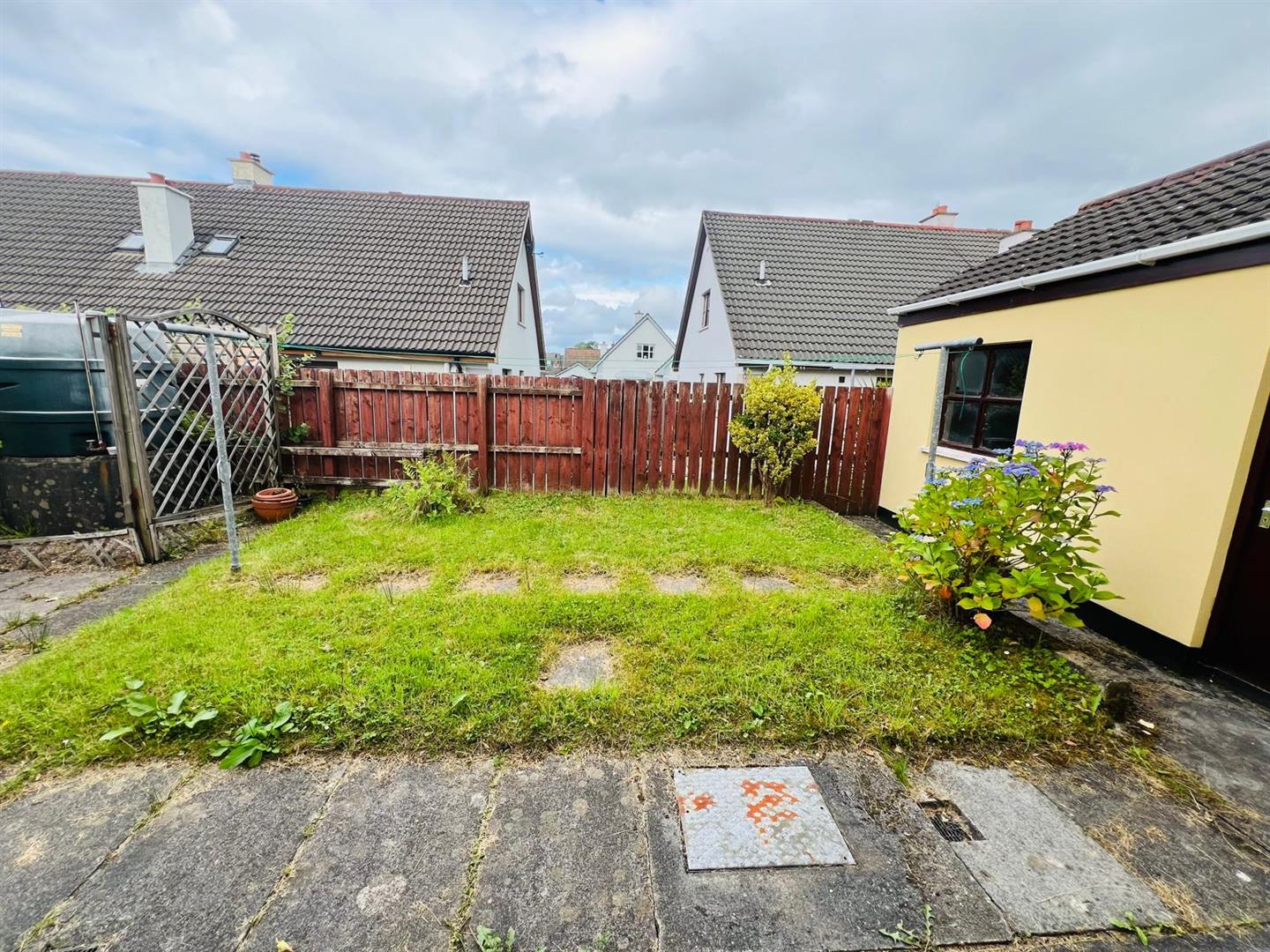 Lawn to rear enclosed by fence and gate.