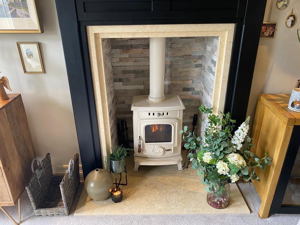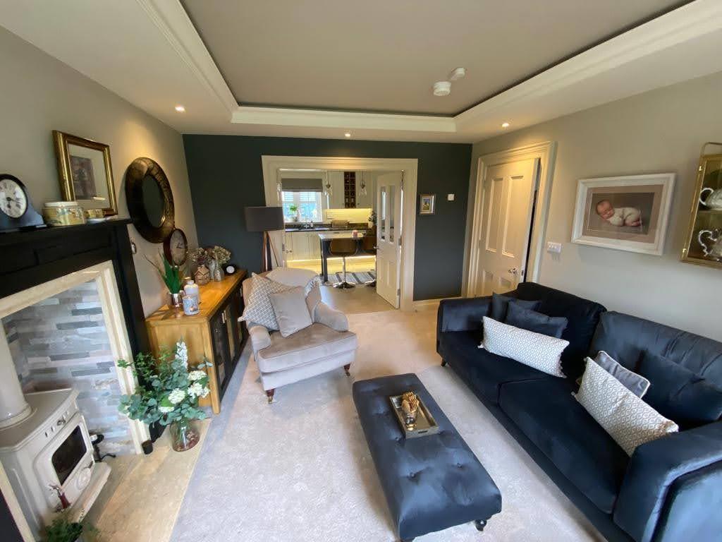 4.65m x 3.51m (15'3" x 11'6") - Having multi fuel stove set on marble hearth, feature ceiling with concealed lighting, double doors to Kitchen/Dining Area.