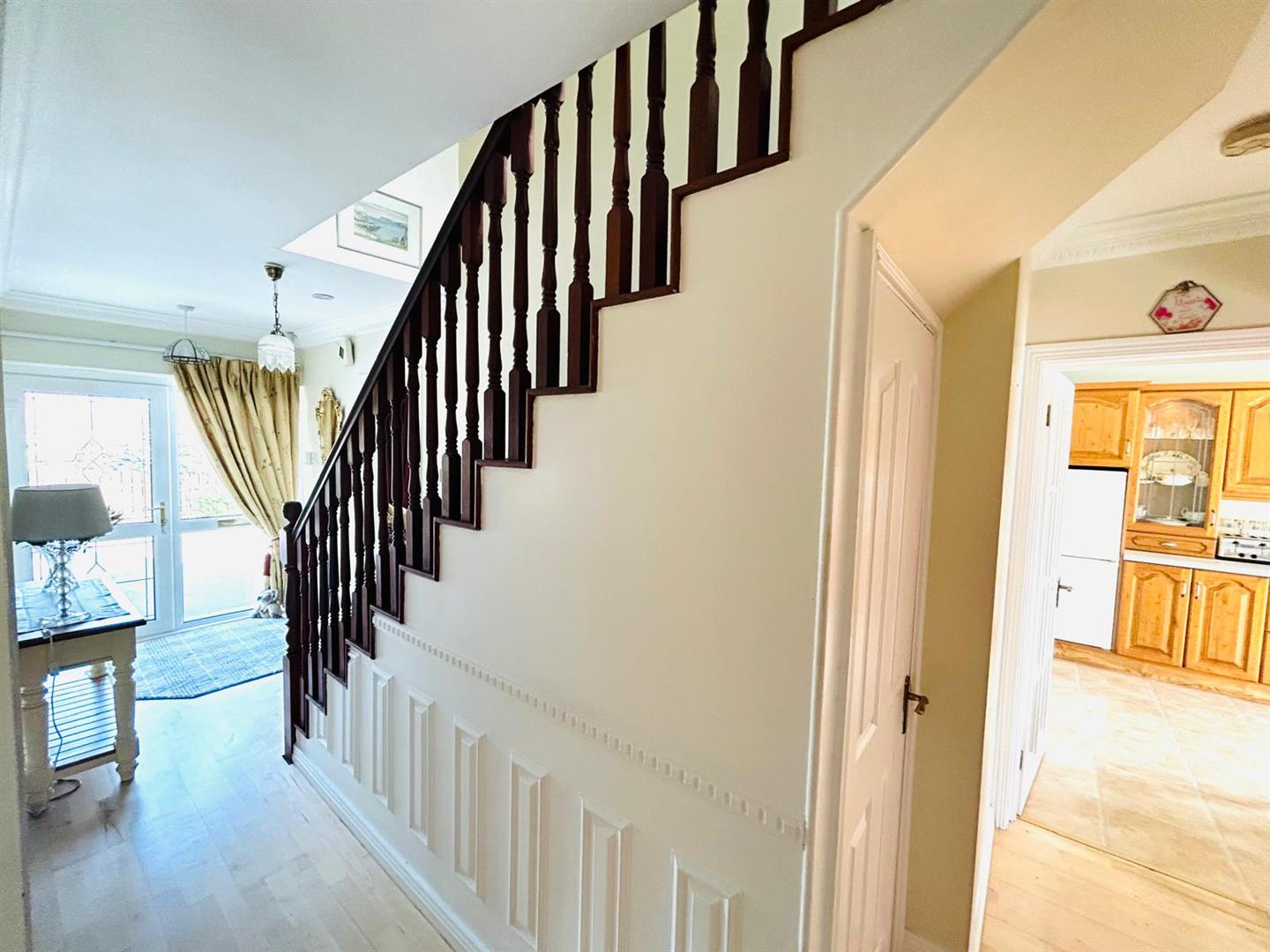 Having understairs cloaks cupboard, ceiling cornicing, semi solid wooden floor.
