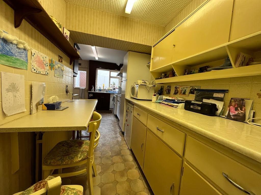 Having sink unit, plumbed for washing machine, space for tumble dryer.