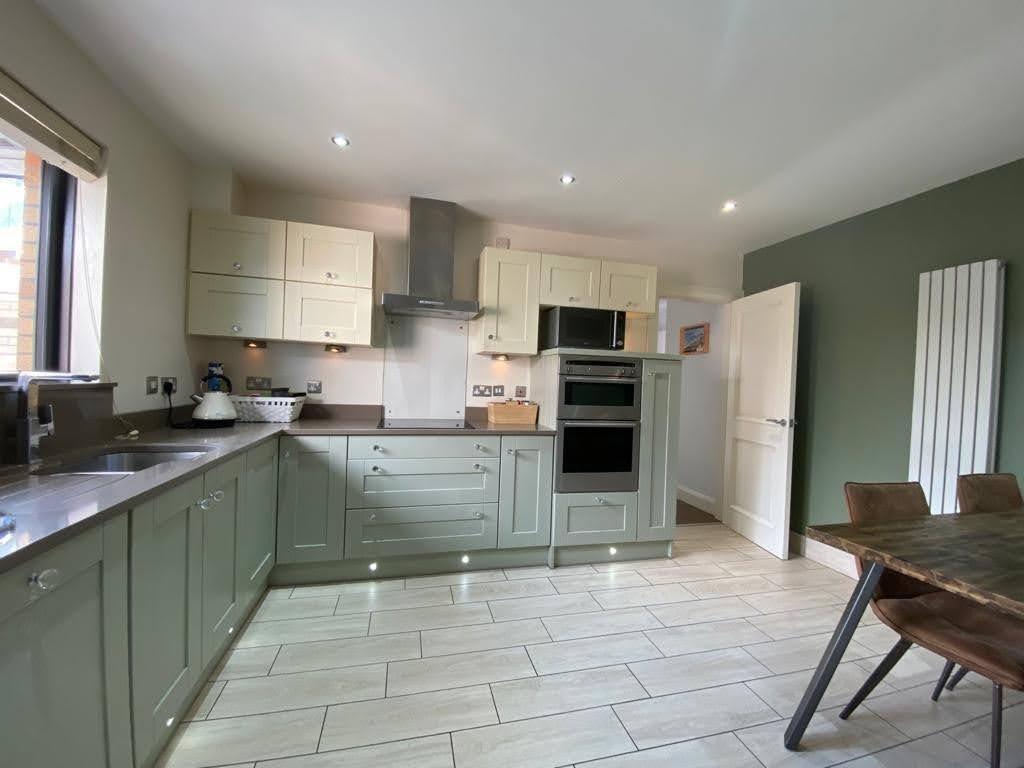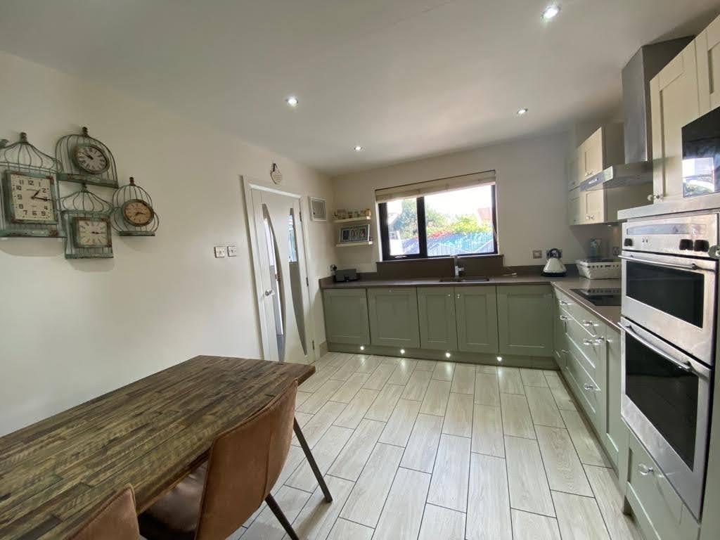 4.14m x 3.15m (13'7" x 10'4") - Having range of eye and low level units, 1 1/2 bowl stainless steel sink unit set in Quartz worktop with matching splashback, hob, double oven, stainless steel extractor hood, integrated fridge and dishwasher, dining space, recessed ceiling lighting, skirting lighting, tiled floor.