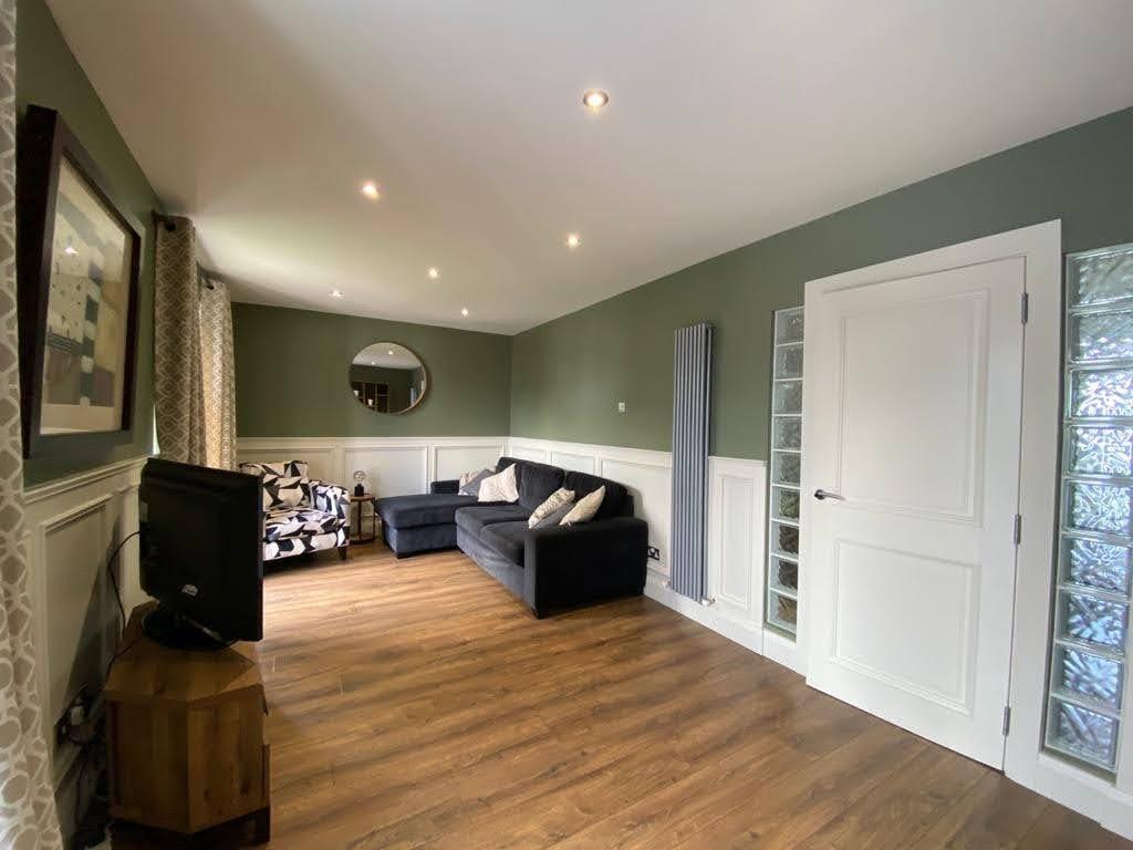 6.15m x 2.97m (20'2" x 9'9") - Having recessed lighting, double French doors, 1/2 height wooden panelled walls, laminated wooden floor.