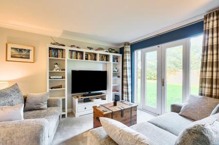 The apartment boasts double doors that open to the beautifully maintained communal gardens, and whilst communal, the positioning of this apartment provides this section of the garden with immense privacy. Internal composition features a lavishly decorated lounge with dining space, a principal double bedroom with en-suite shower room, a guest bedroom/study, a neatly fitted kitchen with integrated hob and oven, and a shared family bathroom.