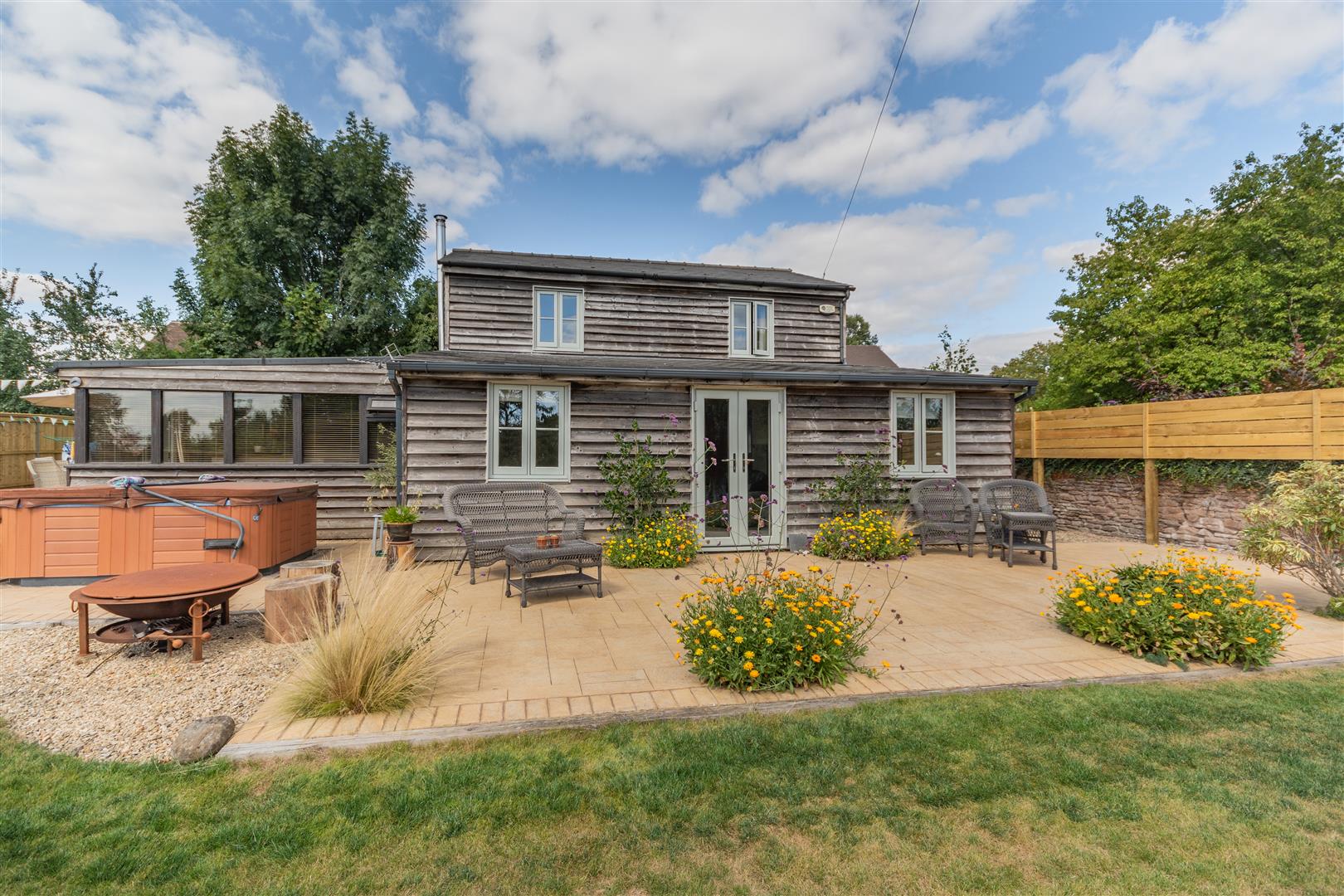 The cottage benefits from having a great indoor / outdoor feel with entertaining and outside dining at the heart of the garden space, with wrap around patio seating areas to the front and side, a hot tub area, fire pit, gravelled seating areas and planted borders to the rear. There is outside lighting and a water tap. The gardens are enclosed by wood panel fencing and wooden fencing and hedging, offering good levels of privacy. The gardens are beautifully presented and a haven for butterflies. The total plot is approximately two thirds of an acre.