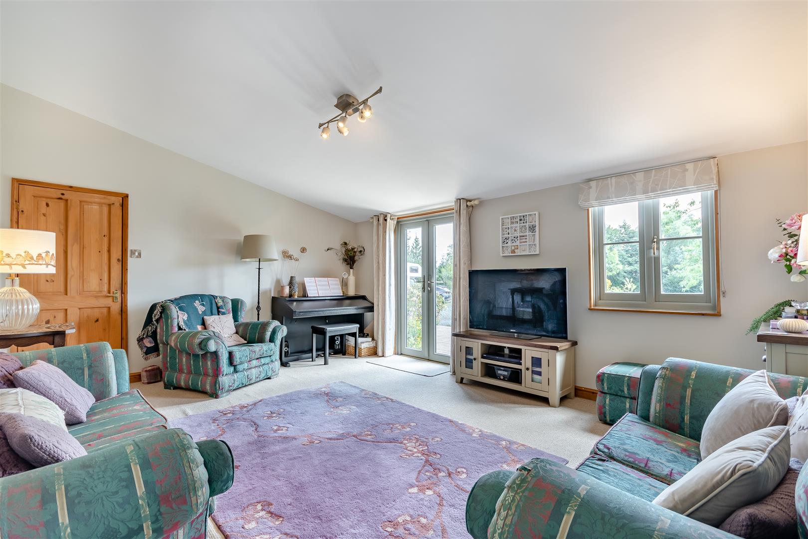 Lounge - 5.23m x 4.19m (17'2 x 13'9) - Alternatively accessed from the entrance hall, two double radiators, double opening French doors to patio and seating area, front aspect window.