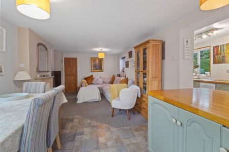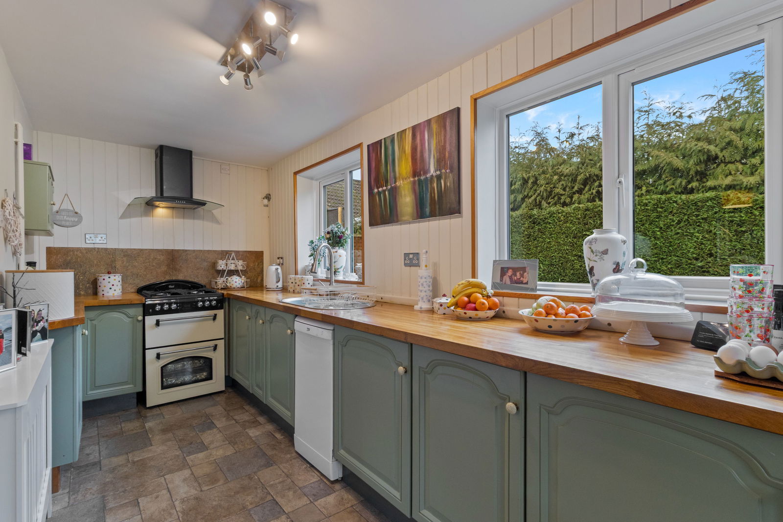 Fitted with a stainless steel sink with base unit under. Further base units. Wooden work surfaces. Cooker point. Radiator. Two double glazed windows to rear. Opening to: