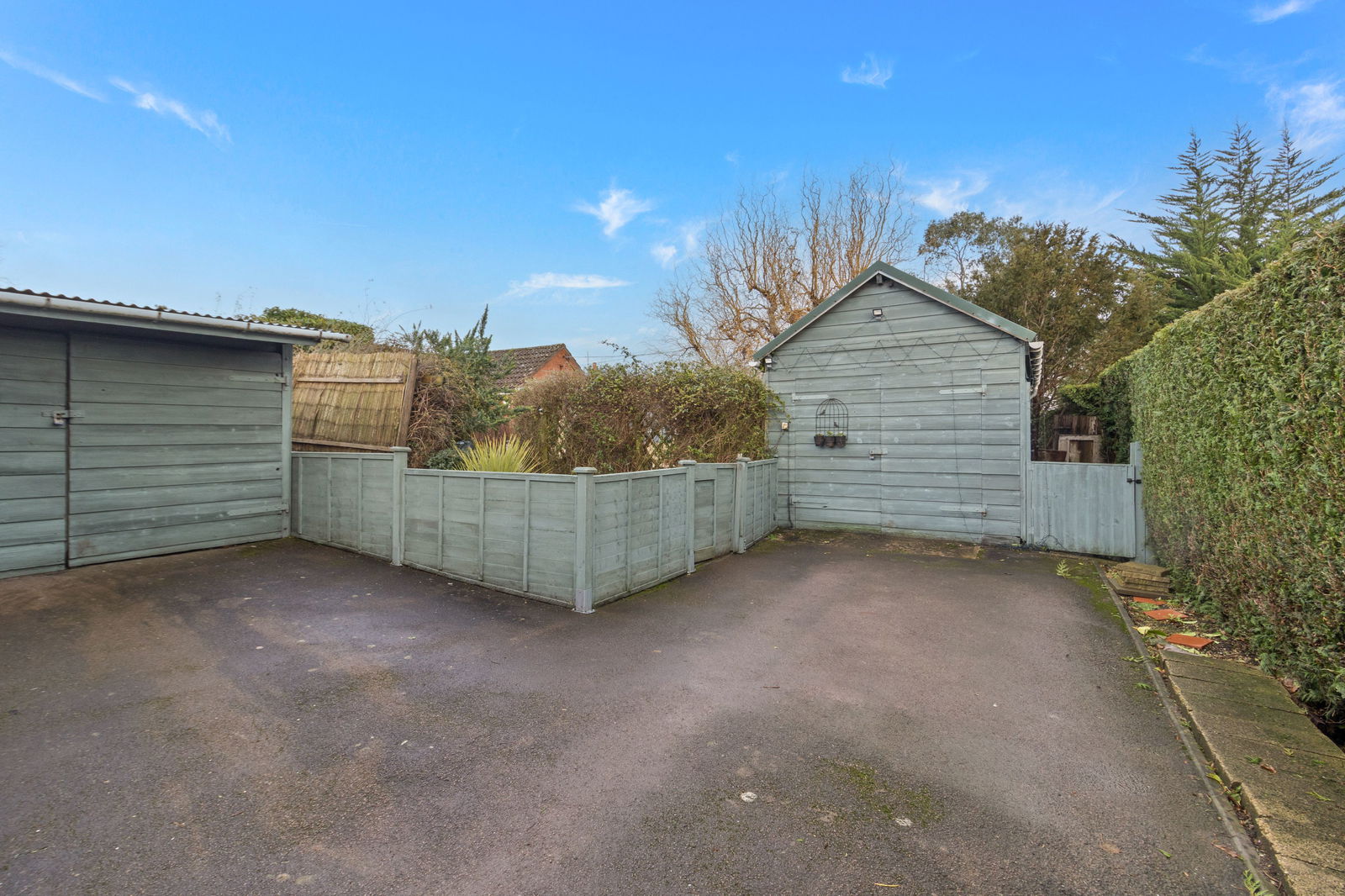 The bungalow is approached via a tarmac driveway which provides off road parking and gives access to two detached timbers GARAGES/WORKSHOPS, one with light and power.
