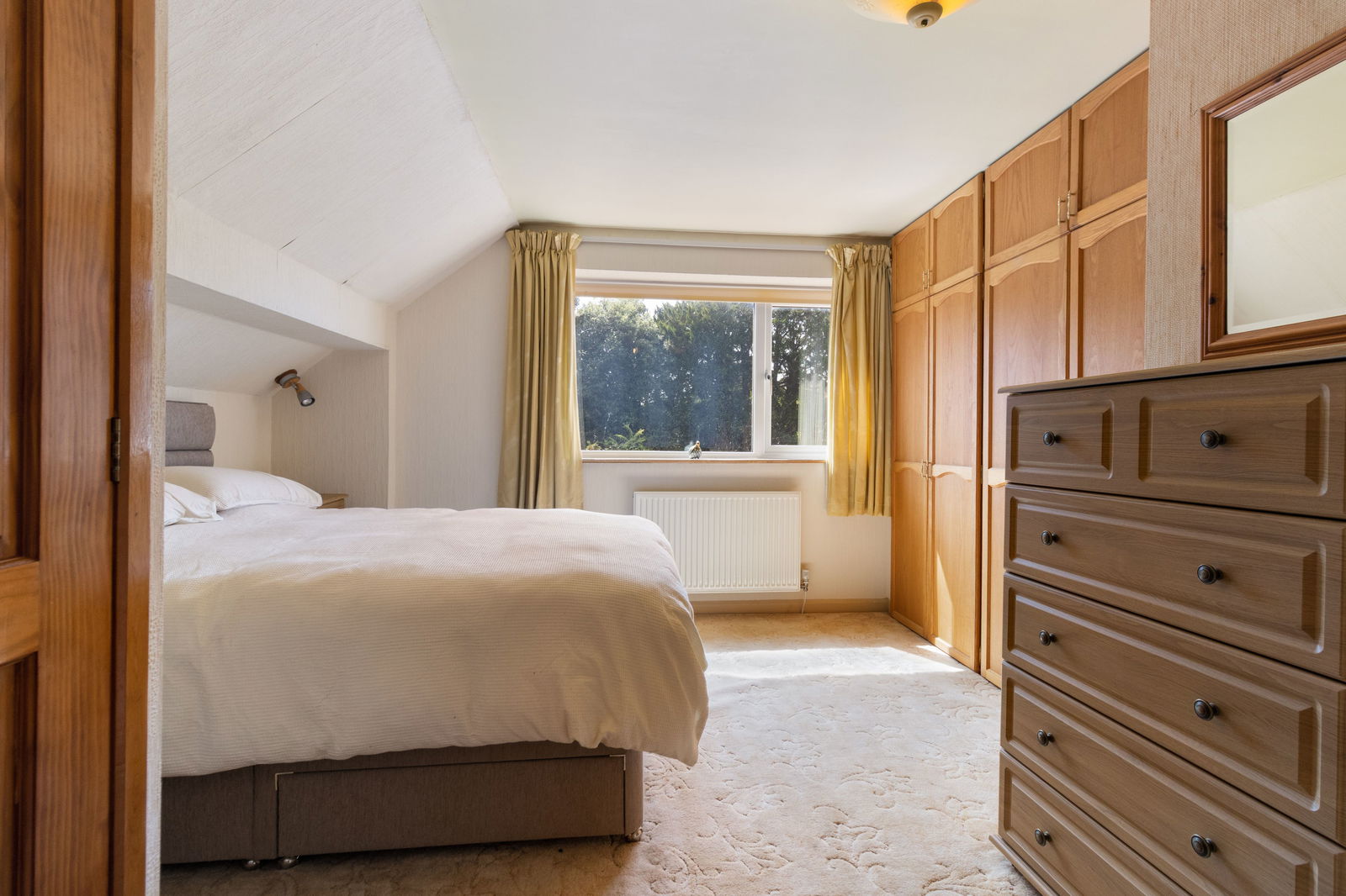Double glazed window to front with views towards the church spire and woods. Fitted wardrobes. Radiator. Under eaves storage.