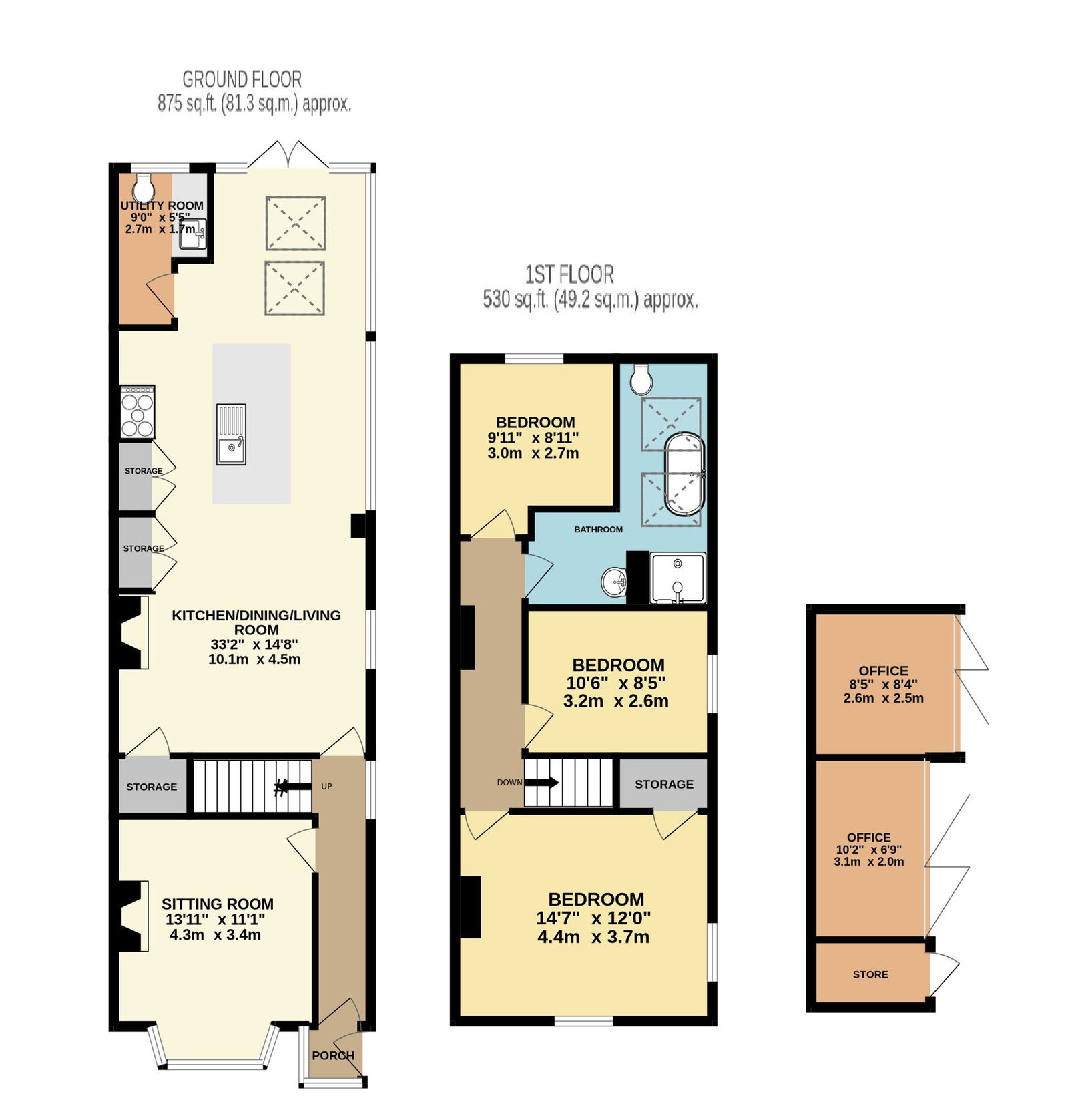A stylish and extended 3-bedroom semi-detached home in a sought-after location. Features a striking oak-clad kitchen/dining/family room extension, a separate sitting room, and an extended family bathroom. Outside, there's a generous garden and two converted outbuildings, ideal as home offices or studios - perfect for modern family life and working from home. EPC - C