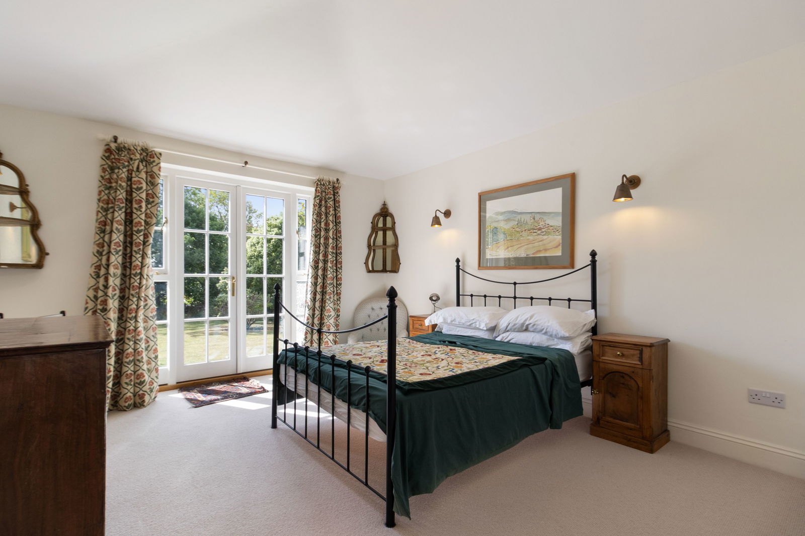 With fitted wardrobes. Radiator. Multi paned double glazed French doors giving access to garden. 4 wall lights.