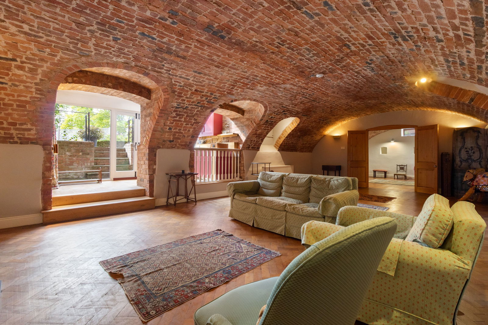 Hollybush House is a most interesting Grade II listed property being a self contained wing of a very fine period town house know as The Yews which comprises three flats. This very unique property has many fine period features including sash windows and a magnificent vaulted brick ceiling to the drawing room. The property provides spacious and very flexible accommodation of considerable charm and character and has gas fired central heating and double glazing. It has an interesting layout being arranged on various levels accessed from a mezzanine landing. An attractive staircase leads down past the dining room giving access to an inner hallway and fitted kitchen with appliances. At this level there is also a pleasant sitting room with feature fireplace, a guest bedroom and shower room. Further steps lead down to a utility room which opens out into a magnificent drawing room which has a superb vaulted brick ceiling; this room would make a wonderful party room. Double doors lead through to a snug and gives access to a second bedroom and re-fitted shower room. The bedroom, which benefits from direct access to the paved courtyard, includes a concealed kitchenette to include a sink, fridge and microwave, ideal annexe potential. Stairs going up from the mezzanine landing lead to the spacious master bedroom with feature porthole window and en-suite bathroom.