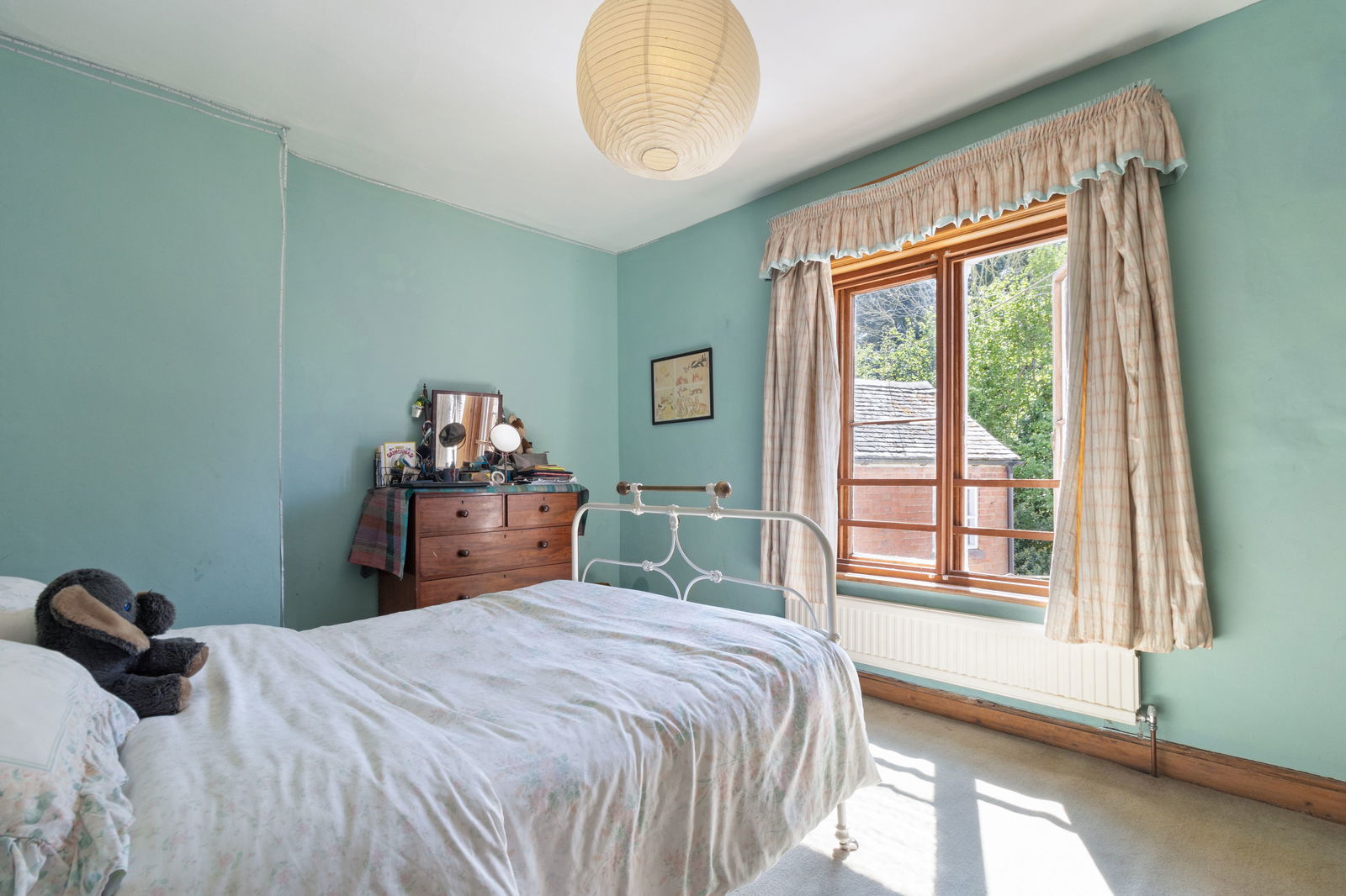 Window to rose/kitchen garden, and built-in wardrobes.