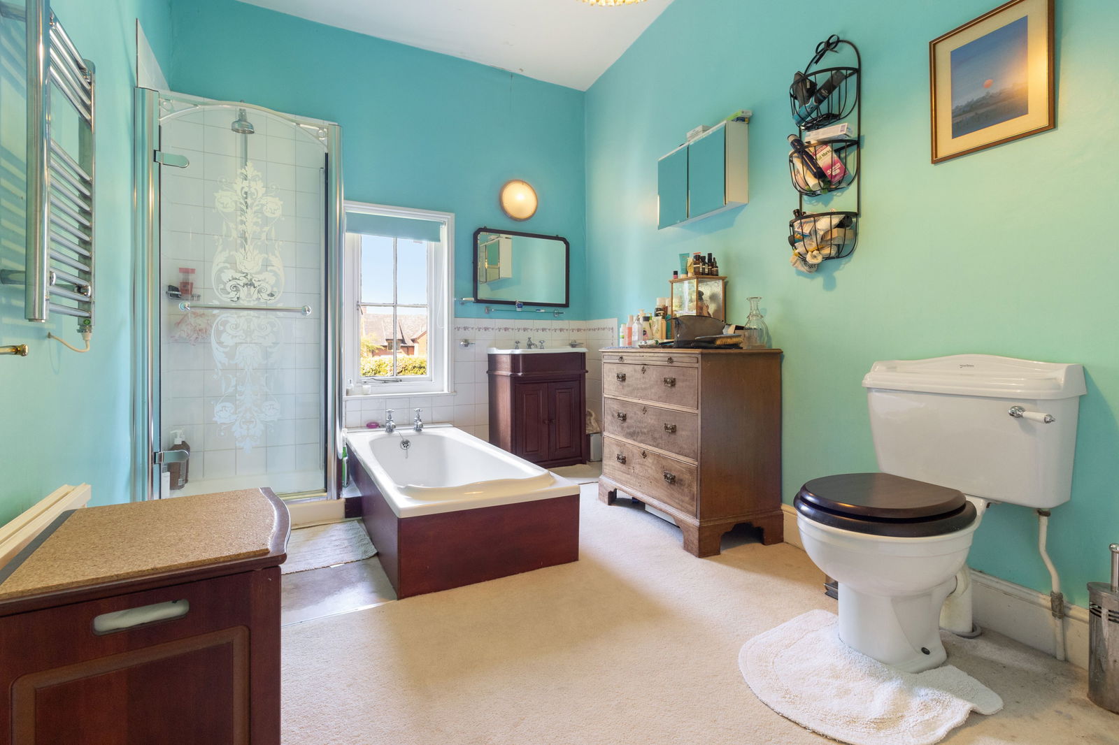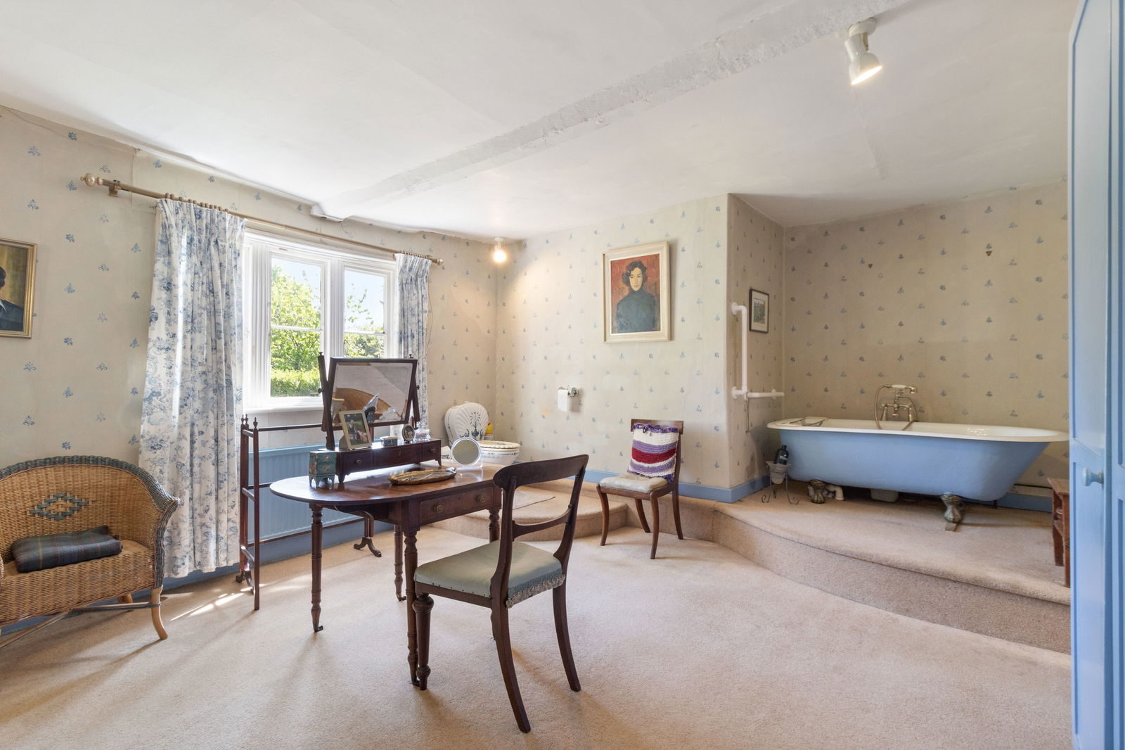 Window to garden, two sinks, low level WC, freestanding bath, built-in wardrobes. This bathroom can be access from bedroom two, second landing and laundry room.