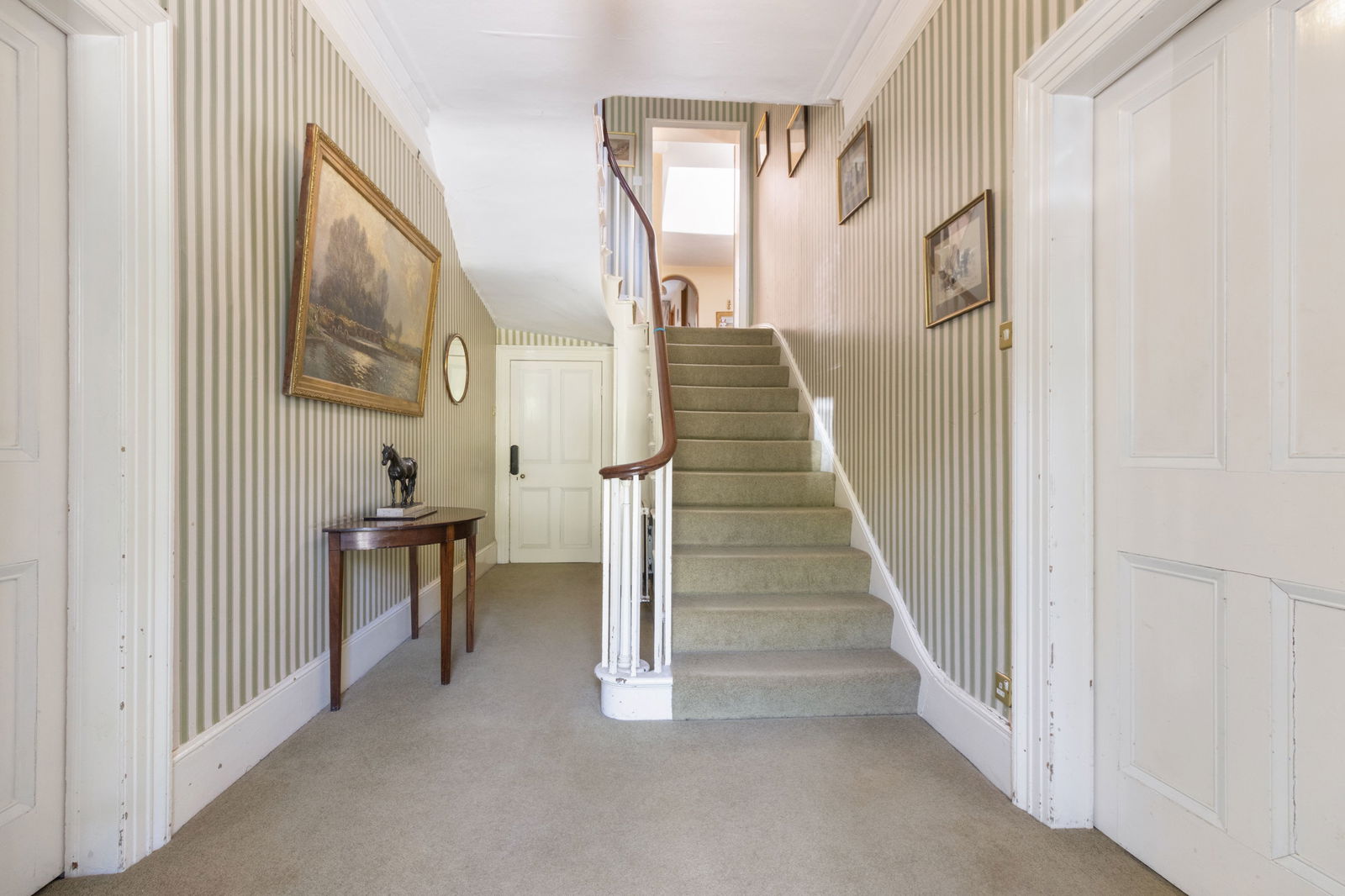 Stairs to first floor, doors to drawing room, dining room and inner hall