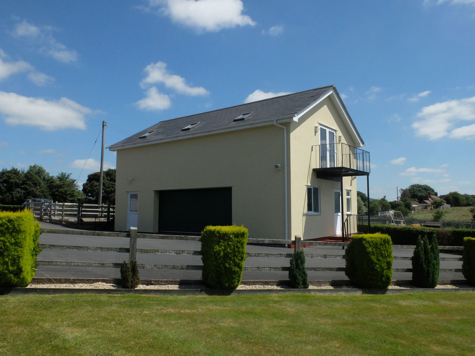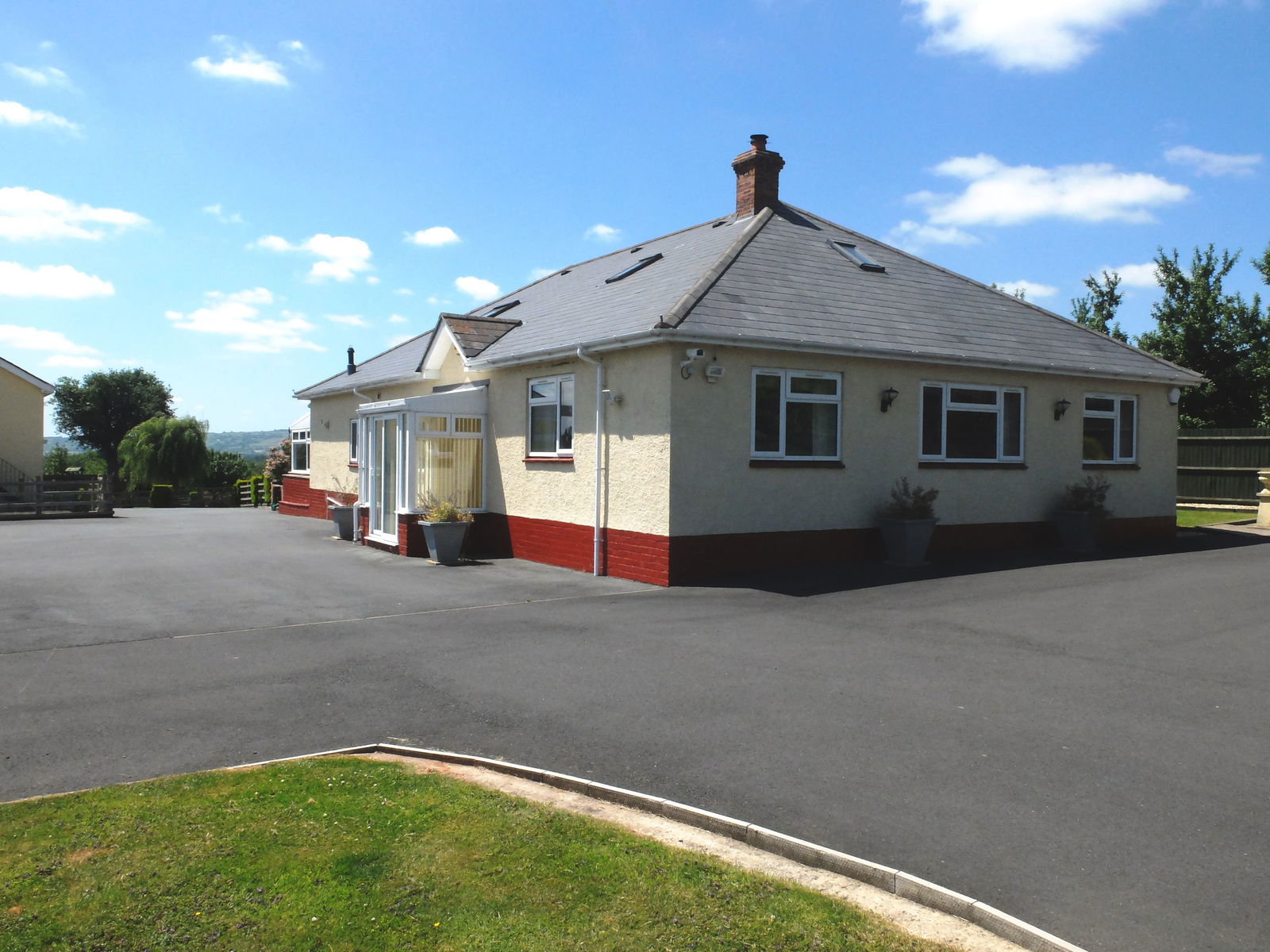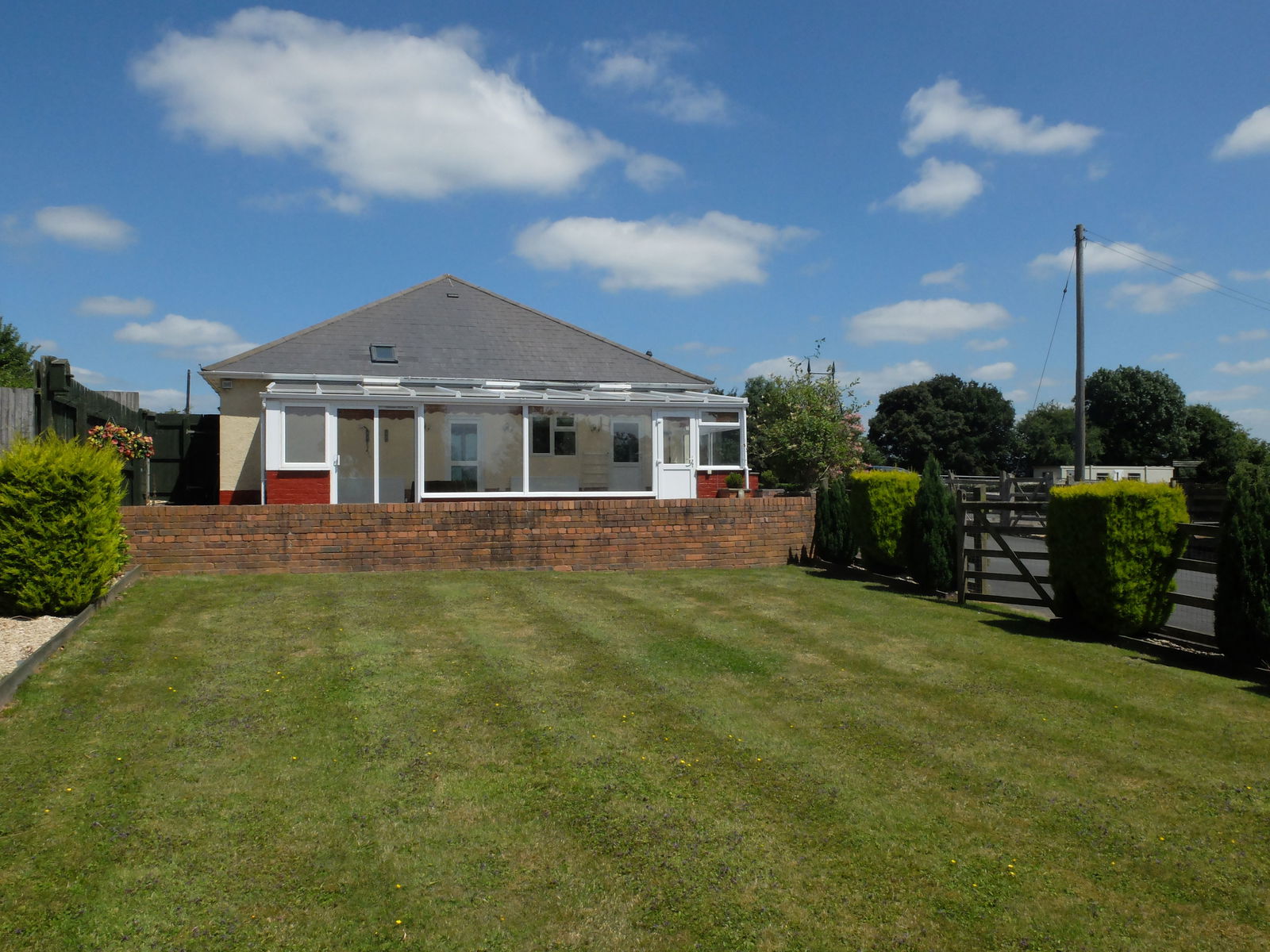Horizons is approached through a brick entrance with electric gate which leads to a large tarmac driveway and hardstanding which provides parking for several vehicles. To one side of the bungalow there is an area of lawn with raised beds and a selection of established plants and shrubs. There is a further area of lawn to the rear and to the other side of the property there is a large paved terrace. Beyond this is an enclosed paddock. There is also a vegetable garden with raised beds. In all the whole plot extends to just under 1 acre and there are wonderful far reaching views.