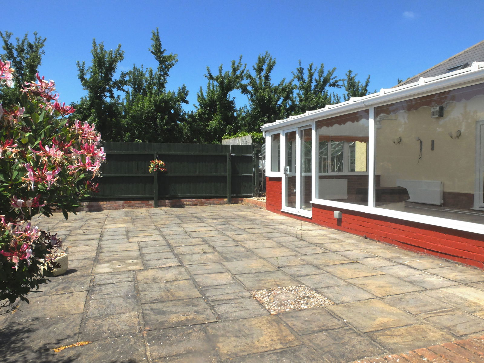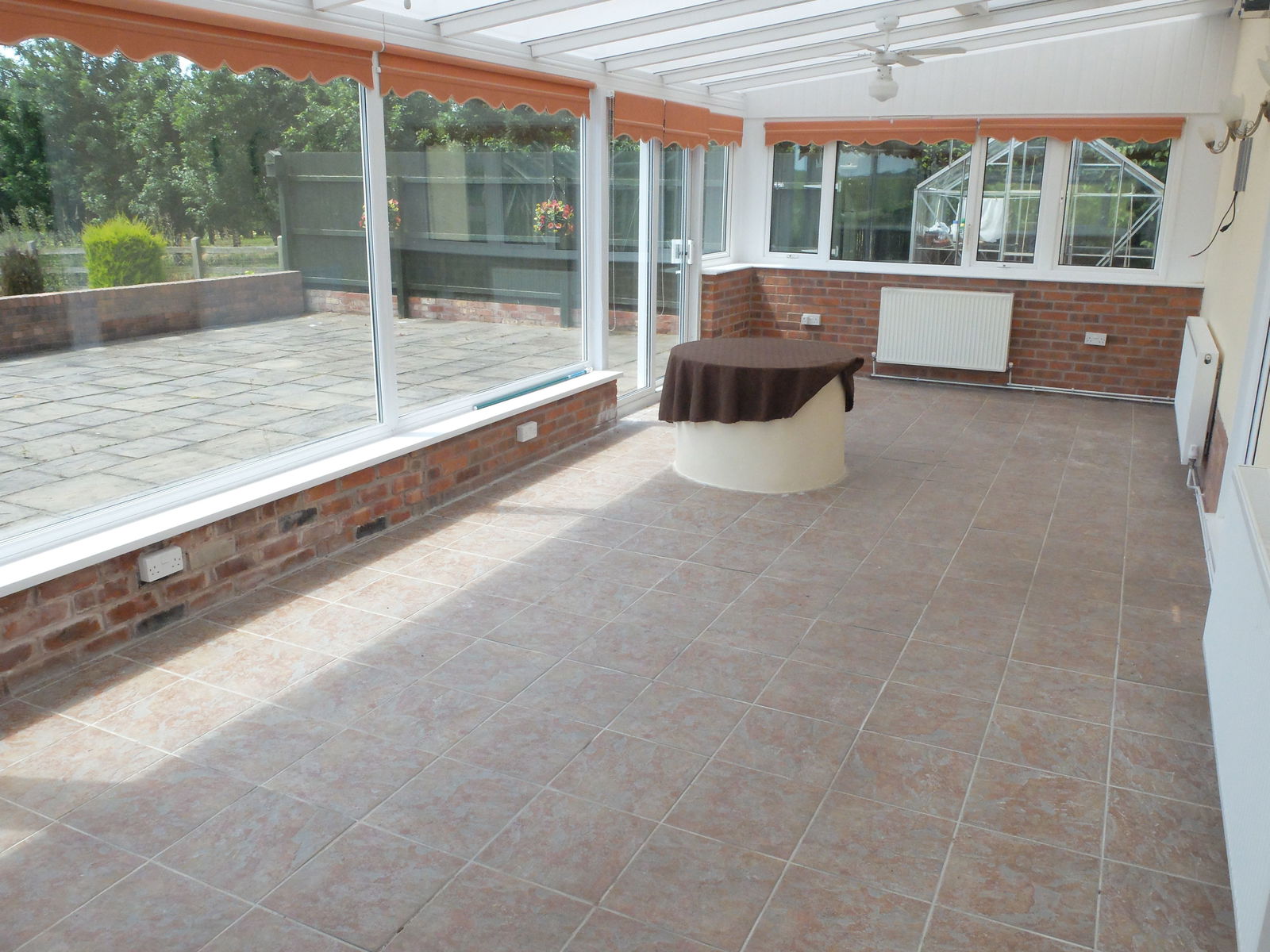 With dwarf brick walling and double glazed surrounds. Tiled floor. Three double radiators. Feature well. Double glazed sliding patio doors to side giving access to a large paved terrace. Further double glazed door to side.