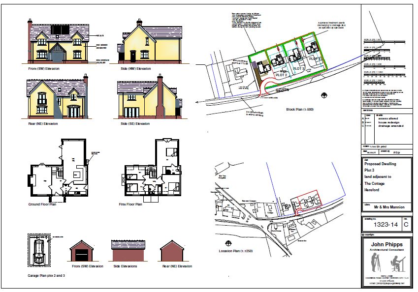 There is to be a shared driveway from the main road with separate off road parking to each property and detached garages for each unit.